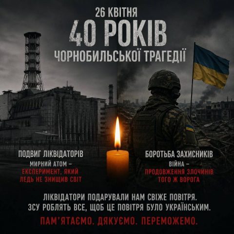 Ми схиляємо голови перед подвигом ліквідаторів. Вони ціною власного життя і здоров’я зупинили невидимого ворога, щоб ми могли дихати чистим повітрям.