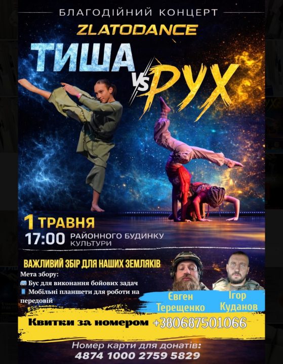 Золотоніська хореографічна студія “Zlatodance” міського будинку культури анонсує благодійний концерт “Тиша або Рух”: не просто виступ, а подія, де кожен рух має значення, а кожна тиша говорить більше, ніж слова!