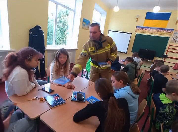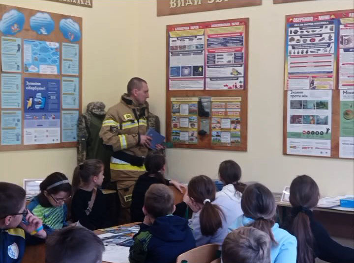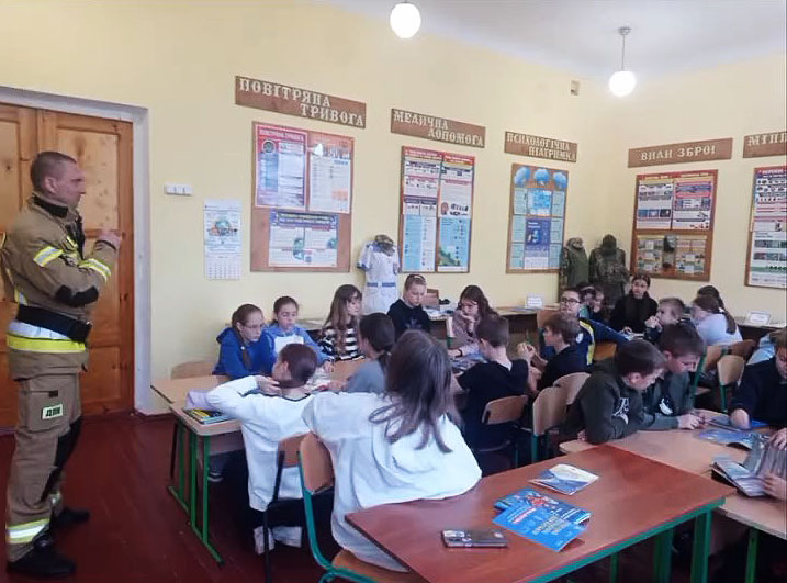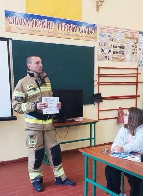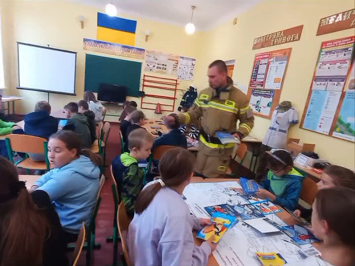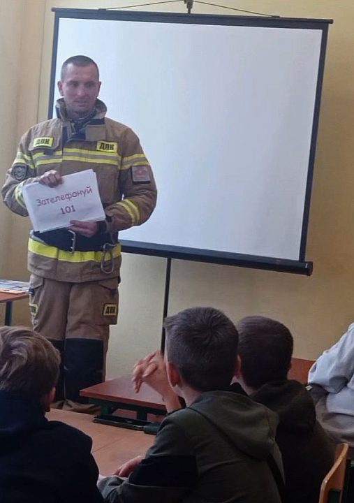 Серед інших заходів, дуже цікавою і повчальною стала зустріч дітей з керівником Добровільної пожежної команди Максимом Масюком. Він розповів про роботу рятувальників, заходи безпеки, алгоритм дій під час пожежі та надзвичайних ситуацій. Подібні заходи і виховні бесіди допомагають школярам зрозуміти, що вогонь – не гра, тому важливо знати правила поводження з ним.