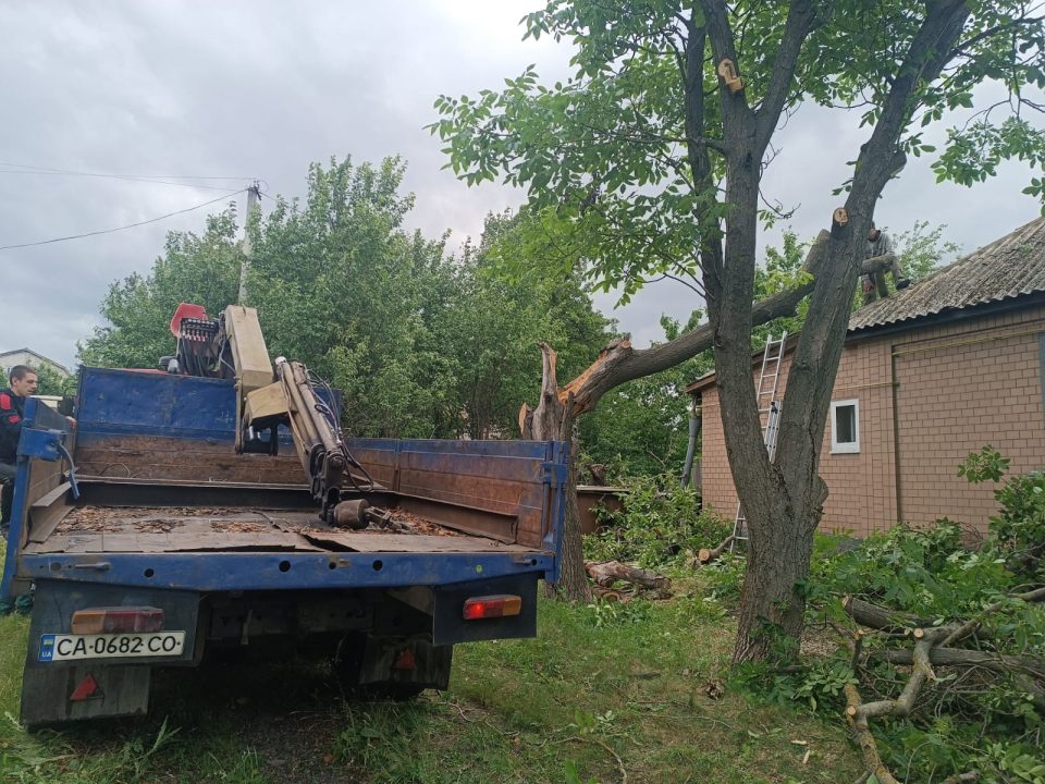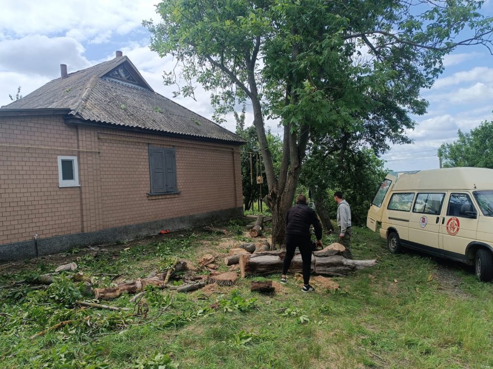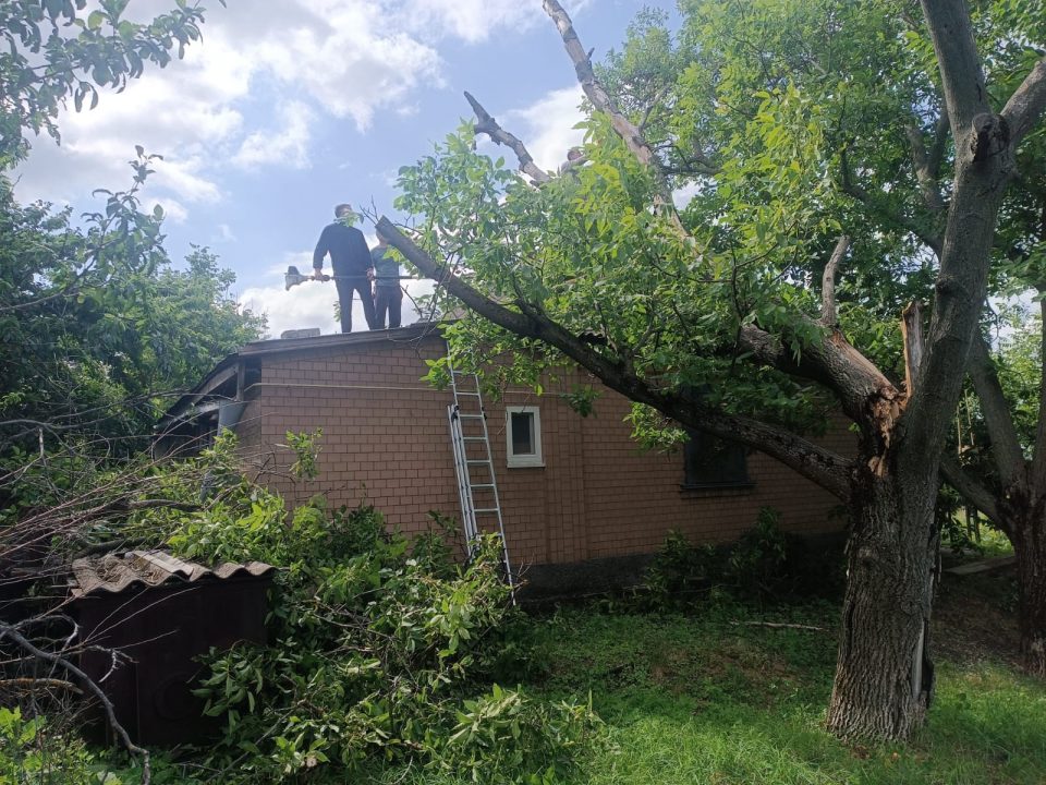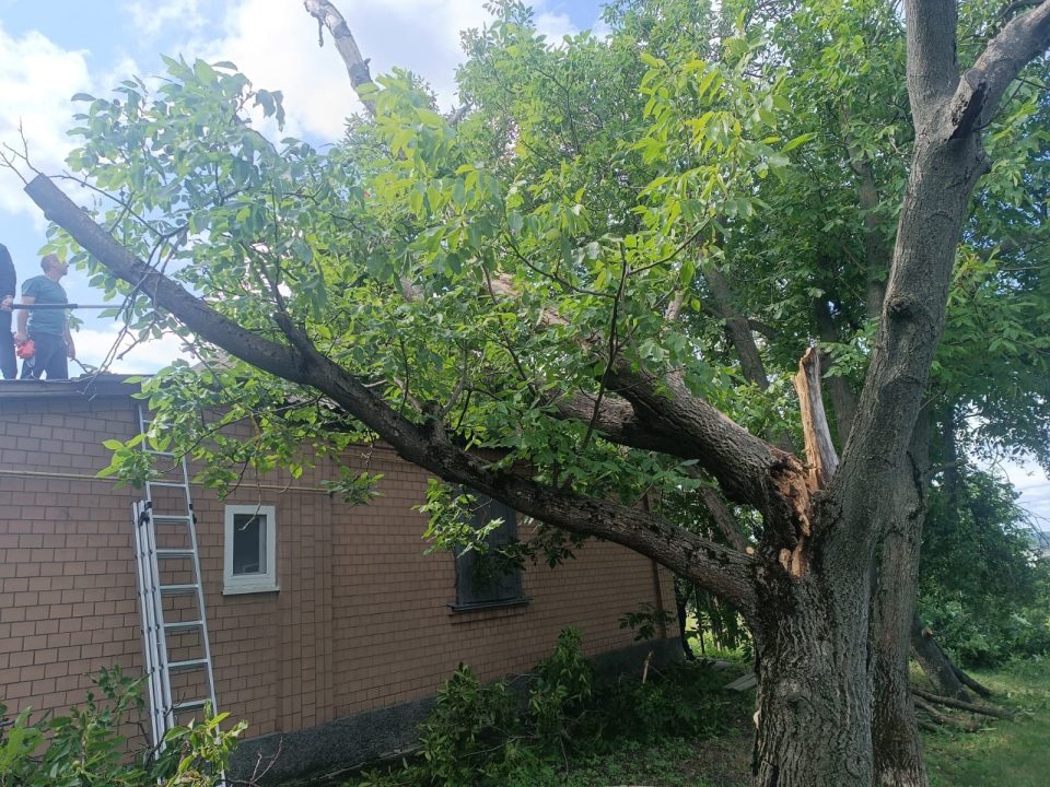 На цьому тема проблемної рослинності не завершилась, відзначившись подією, котра потенційно могла завдати чимало лиха. На гарячу лінію до нас звернулася самотня літня жителька кварталу №3. Внаслідок буревію, що стався днями, на її домоволодіння частково впав великий старий горіх. Звісно ж, самотужки дати раду цьому вона не могла, тому й потребувала нашої допомоги.