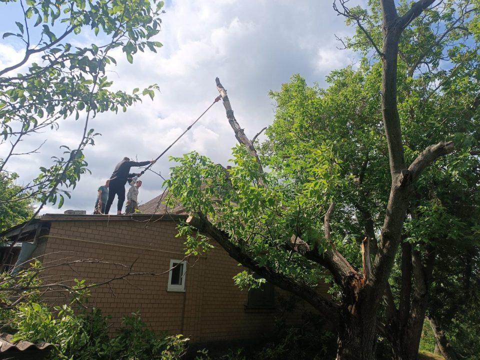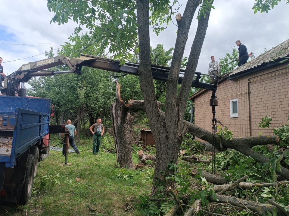 Працювати мусили дійсно усі, ще й користуючись допомогою зовні. Ситуація непроста і банальне обпилювання могло призвести до суттєвих пошкоджень не лише будинку, а й газової мережі. Саме тому сюди залучили ще й маніпулятор, залюбки наданий небайдужим золотонісцем Анатолієм Ткаченком, а також відповідне обладнання із бази Добровільної пожежної команди.