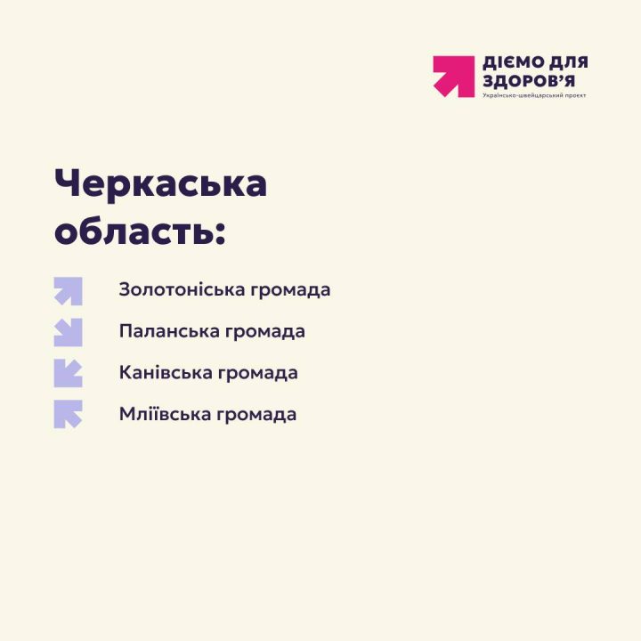 Золотоніська громада стала однією з чотирьох із Черкаської області, яку відібрали з-понад сотні претендентів для участі в Українсько-швейцарському проєкті «Діємо для здоров’я». Упродовж наступних 3,5 років громада спільно з експертами проєкту працюватиме над профілактикою неінфекційних захворювань. Вона нині – головна причина понад 80% передчасних смертей в Україні.