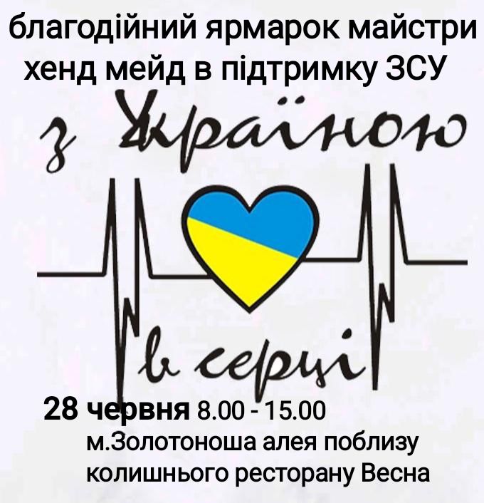 28 червня відбудеться традиційний благодійний ярмарок золотоніських майстрів хендмейду на підтримку ЗСУ.