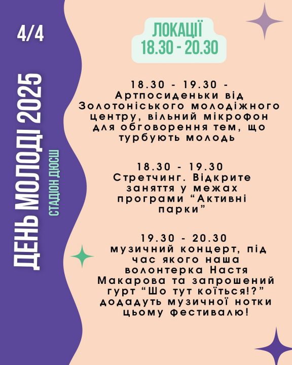 Форма реєстрації: Анкета учасника Дня молоді 2025 у Золотоноші. Реєстрація триває до 12 серпня, 23:59.