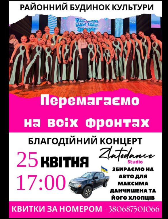 Ми, танцювальна студія “Zlatodance”, уже п’ятий рік створюємо простір, у якому діти зростають не лише як артисти, а й як особистості з відкритими серцями. Нам надзвичайно приємно оголосити, що вже втретє проводимо благодійний концерт «Перемагаємо на усіх фронтах»! Цього року ми присвячуємо його найважливішому — допомозі нашим Захисникам.