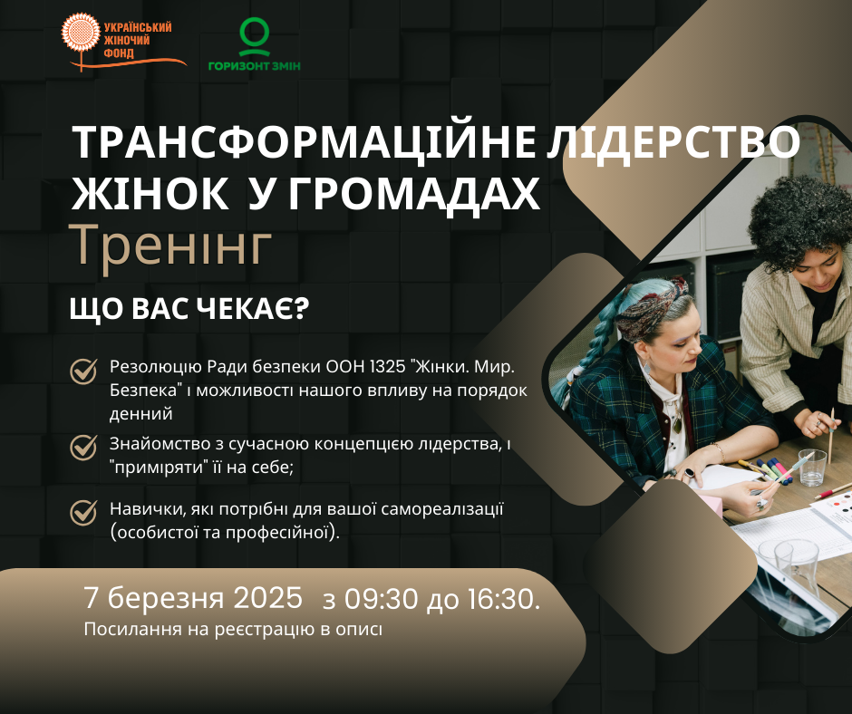 Тренінг проводить ГО “Горизонт змін” (Черкаси) за підтримки Український Жіночий Фонд / Ukrainian Women’s Fund та за сприяння КНУ “Золотоніського молодіжного центру.”