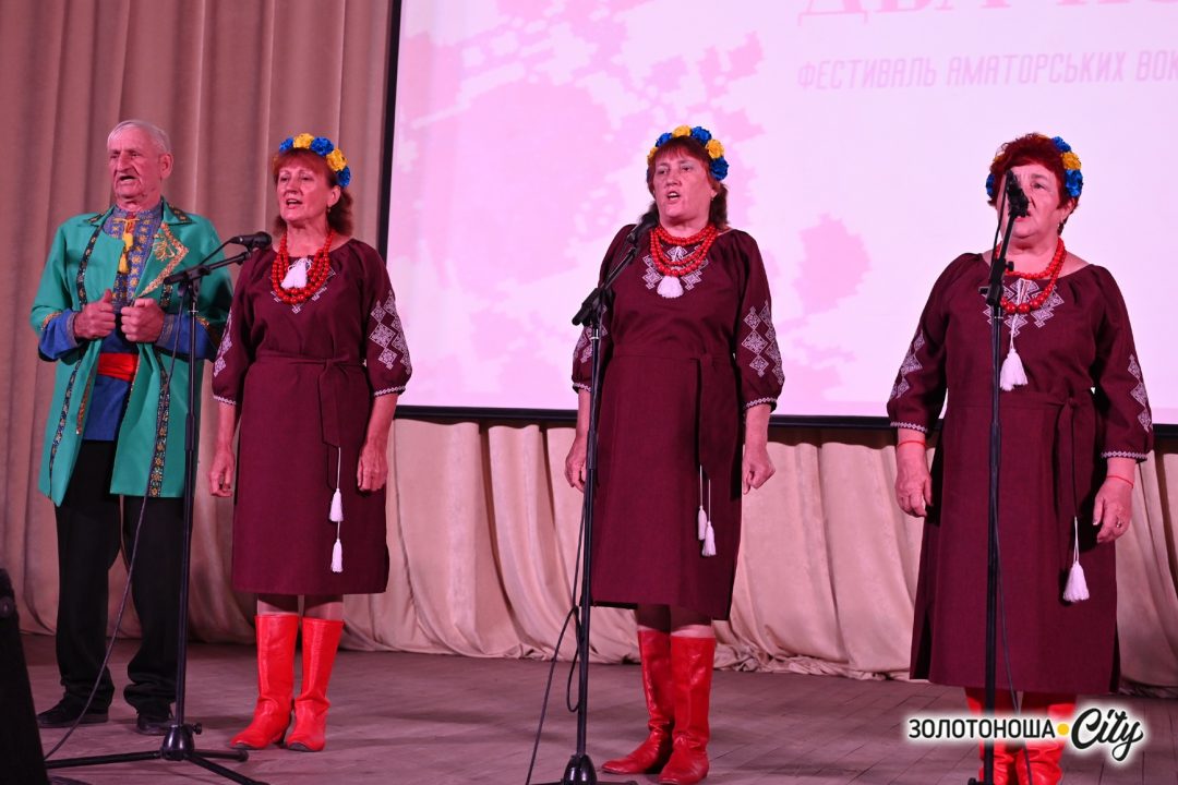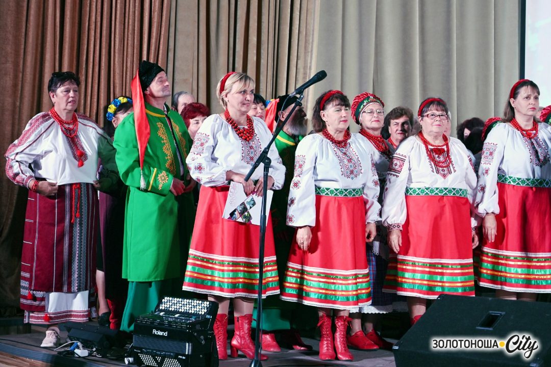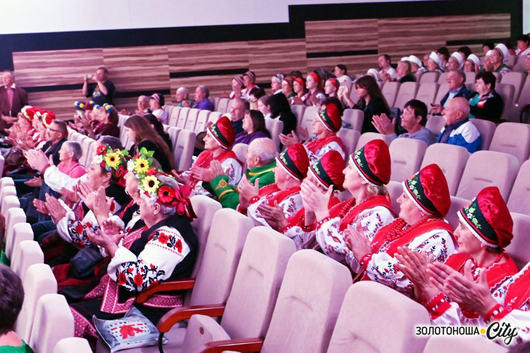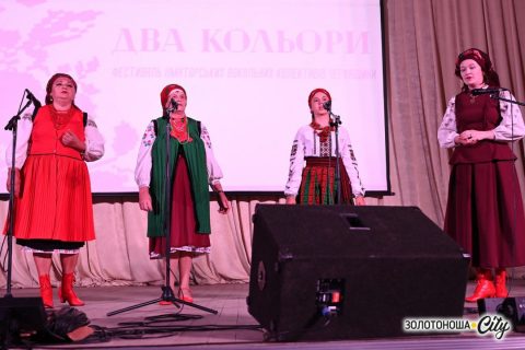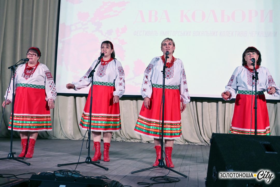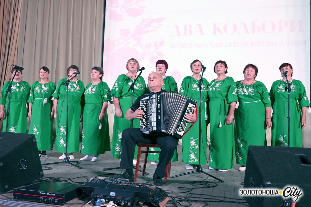 Далі концертна програма продовжилася у Будинку культури. На сцені – учасники пісенного фестивалю «Два кольори». Українська пісня об’єднала усю Золотоніщину. Тут і благодатнівське “Надвечір’я”, і «Молодички молодії» із Хвилево-Сорочина. Аматорські вокальні ансамблі із Крупського, Вознесенського, Пальміри. Близько 20 колективів у яскравих народних костюмах подарували справжню насолоду.
