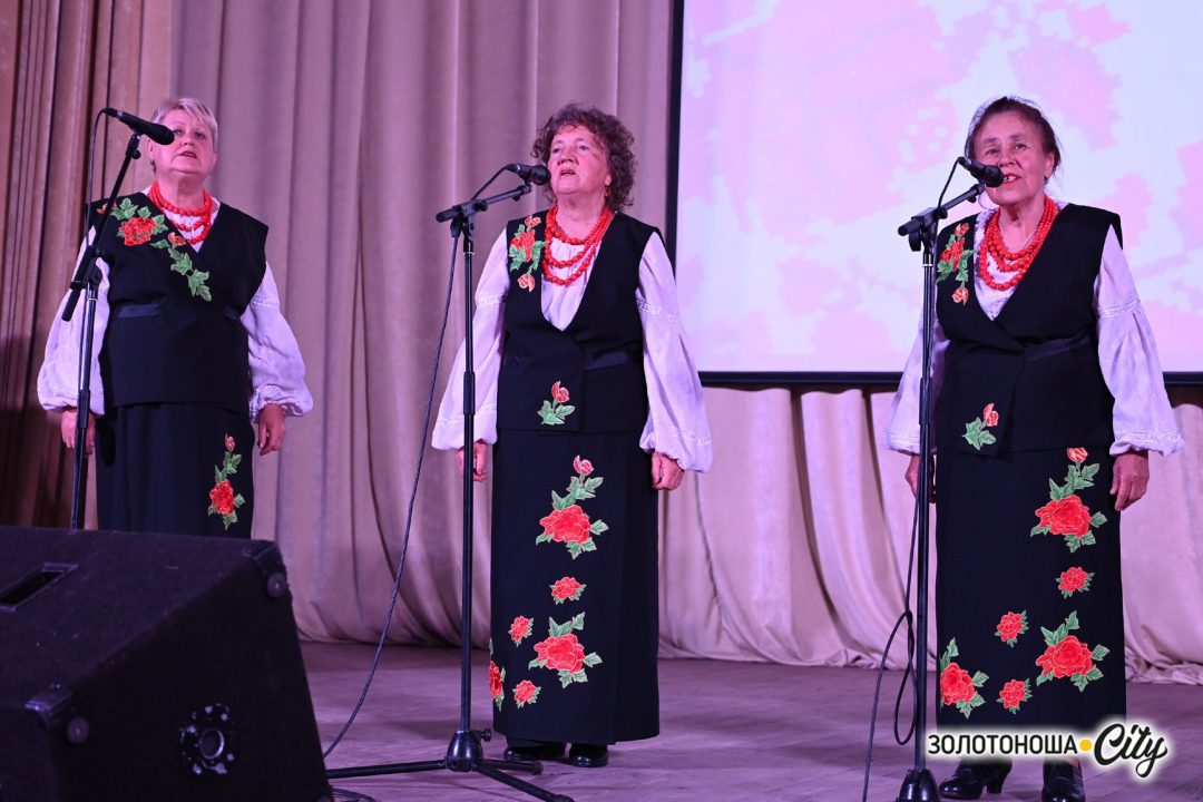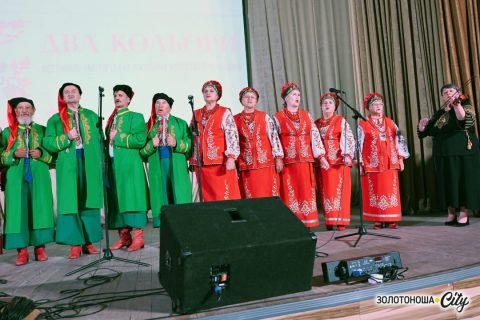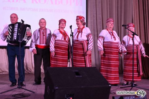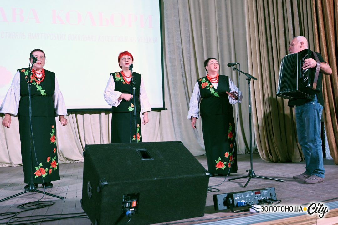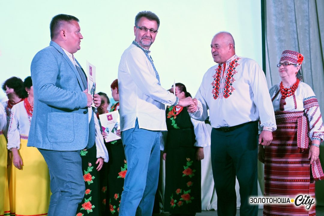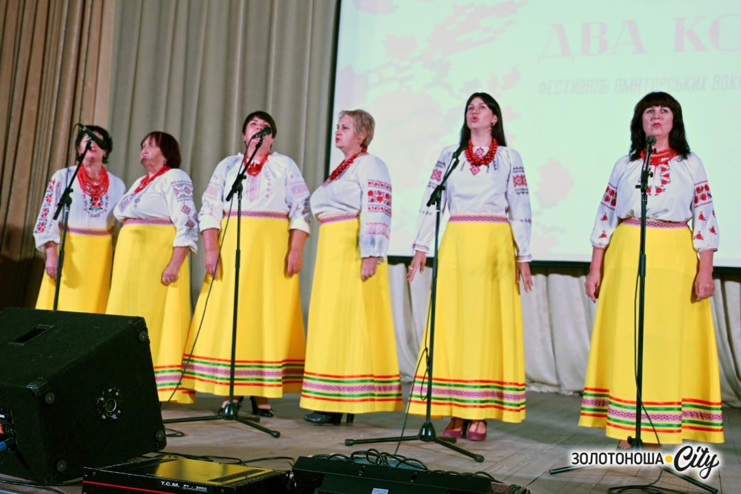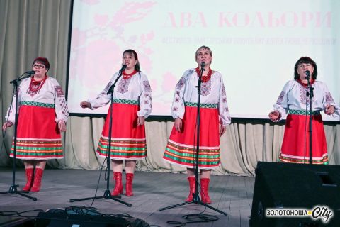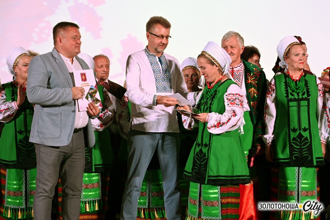 Далі концертна програма продовжилася у Будинку культури. На сцені – учасники пісенного фестивалю «Два кольори». Українська пісня об’єднала усю Золотоніщину. Тут і благодатнівське “Надвечір’я”, і «Молодички молодії» із Хвилево-Сорочина. Аматорські вокальні ансамблі із Крупського, Вознесенського, Пальміри. Близько 20 колективів у яскравих народних костюмах подарували справжню насолоду.