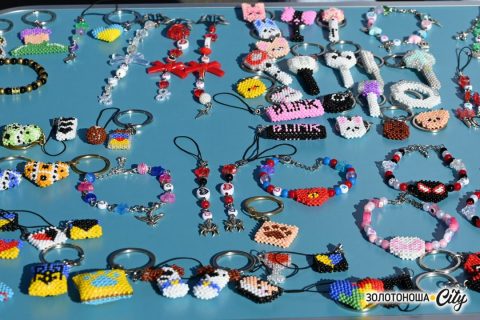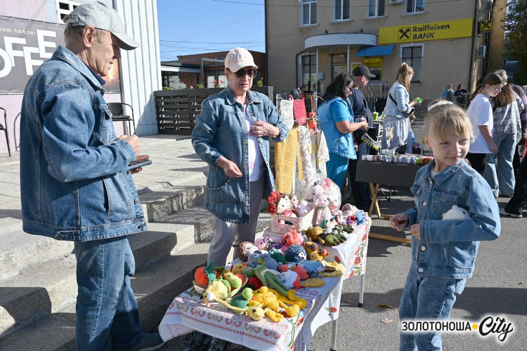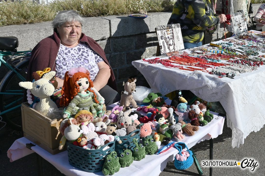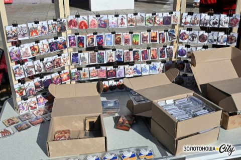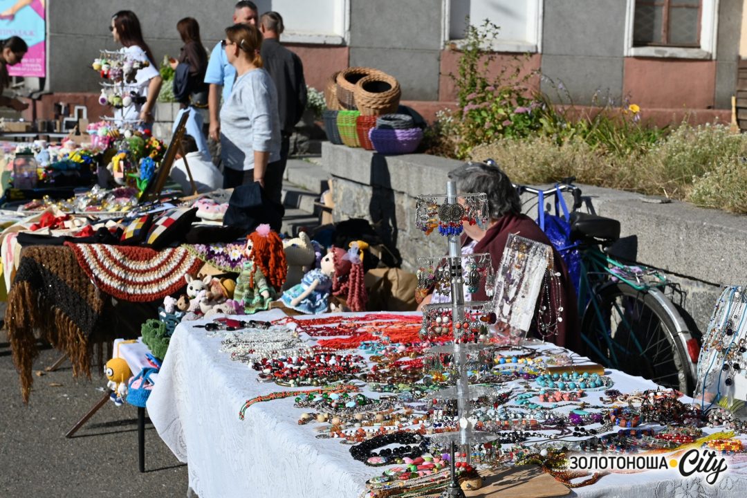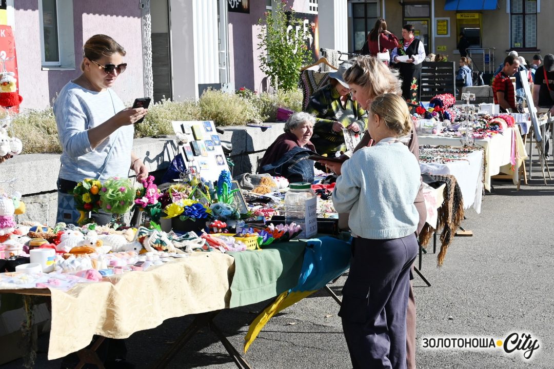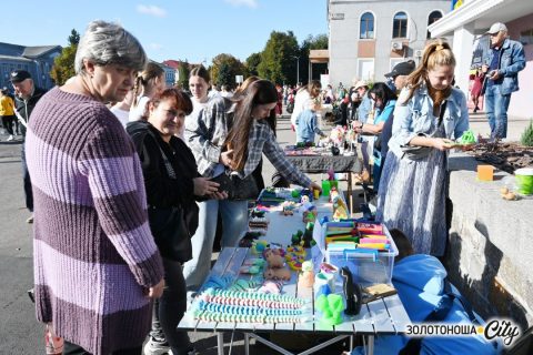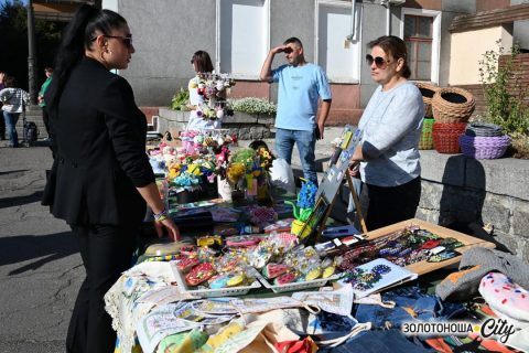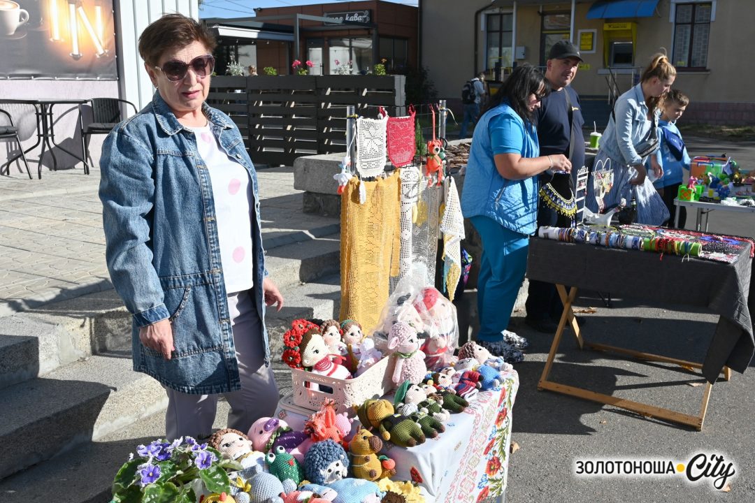 Зранку біля міського Будинку культури вже вирував благодійний ярмарок народних майстринь. Цьогоріч разом із золотоніськими рукодільницями свій товар презентували й умільці із сусіднього Канева. Усі, хто прийшов насолодитися концертною програмою від танцювальних колективів міста та улюблених артистів Будинку культури, мав змогу придбати оригінальний, самобутній виріб або ж просто задонатити для потреб військових.