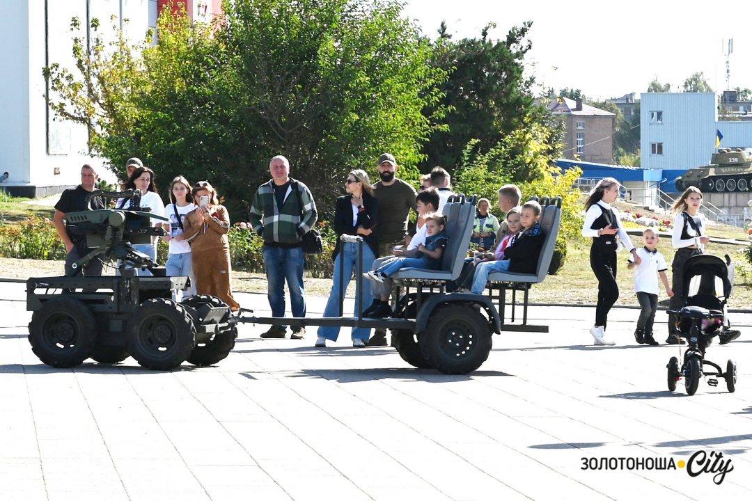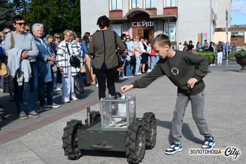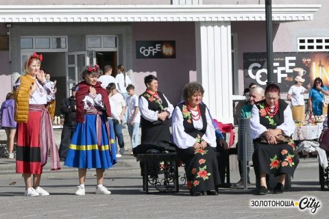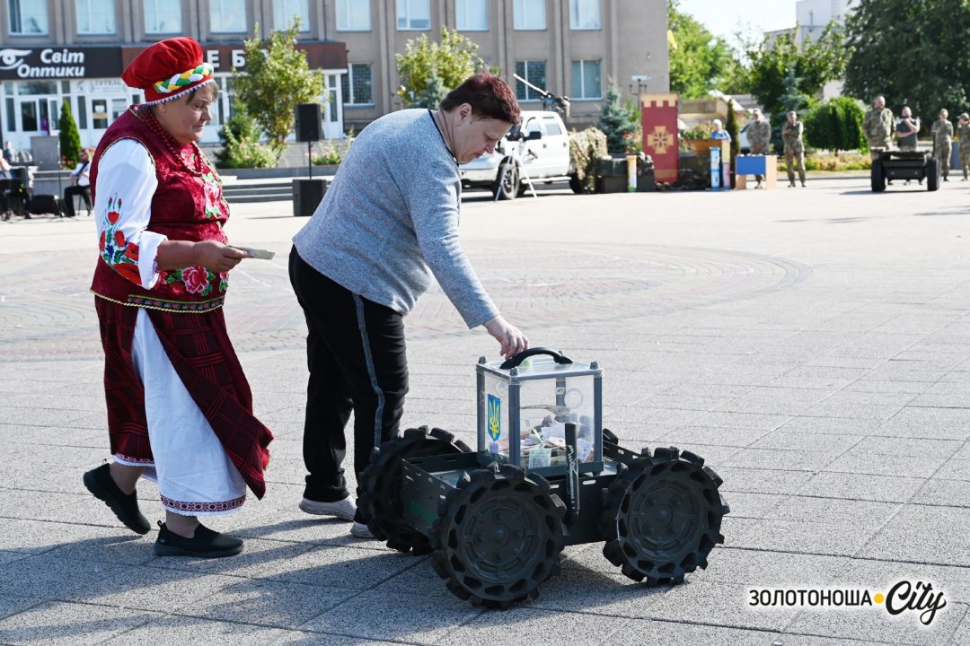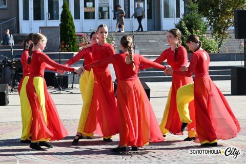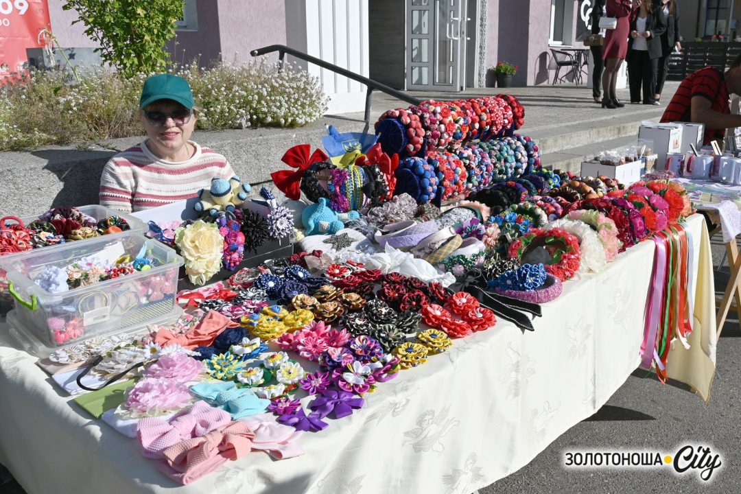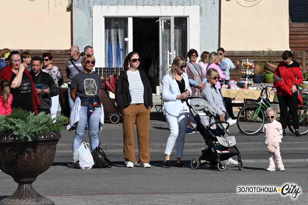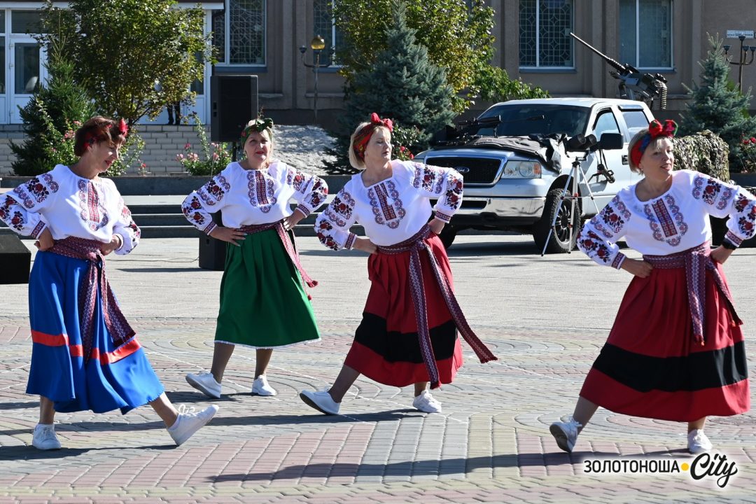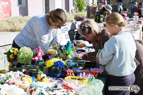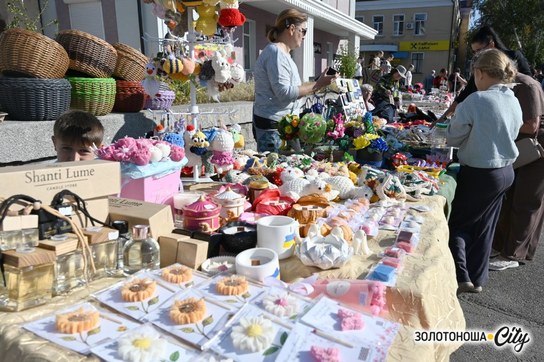 Зранку біля міського Будинку культури вже вирував благодійний ярмарок народних майстринь. Цьогоріч разом із золотоніськими рукодільницями свій товар презентували й умільці із сусіднього Канева. Усі, хто прийшов насолодитися концертною програмою від танцювальних колективів міста та улюблених артистів Будинку культури, мав змогу придбати оригінальний, самобутній виріб або ж просто задонатити для потреб військових.