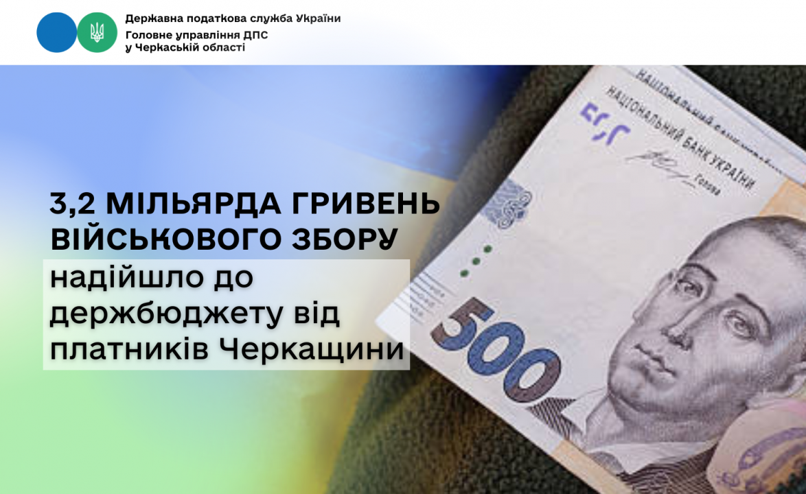 Протягом січня-листопада 2025 року внесок платників податків Черкаської області у зміцнення обороноздатності України сягнув 3,2 мільярда гривень військового збору.