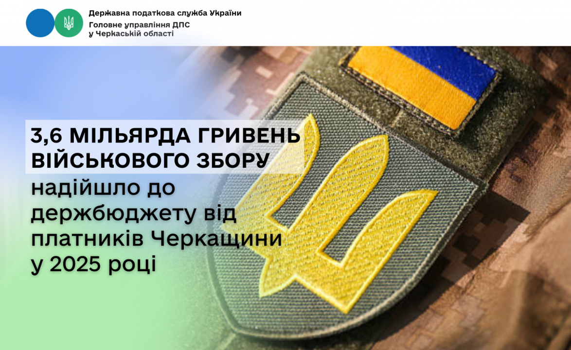 Протягом 2025 року внесок платників податків Черкаської області у зміцнення обороноздатності України сягнув 3,6 мільярда гривень військового збору.