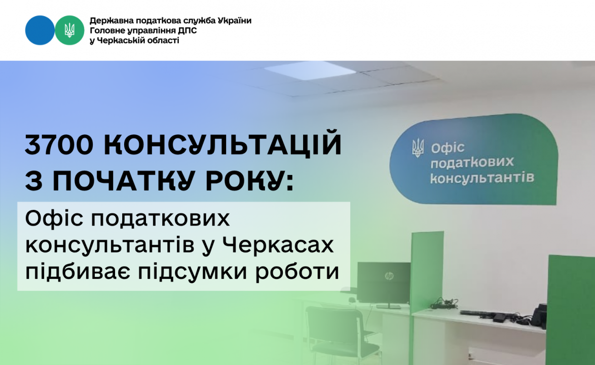 За цей період фахівці Офісу надали платникам 3700 кваліфікованих консультацій. Загалом же з моменту відкриття сервісу понад 6,7 тисячі громадян та представників бізнесу звернулися за професійною підтримкою. Така висока активність підтверджує запит черкаської громади на якісний державний сервіс у форматі «живого» спілкування.