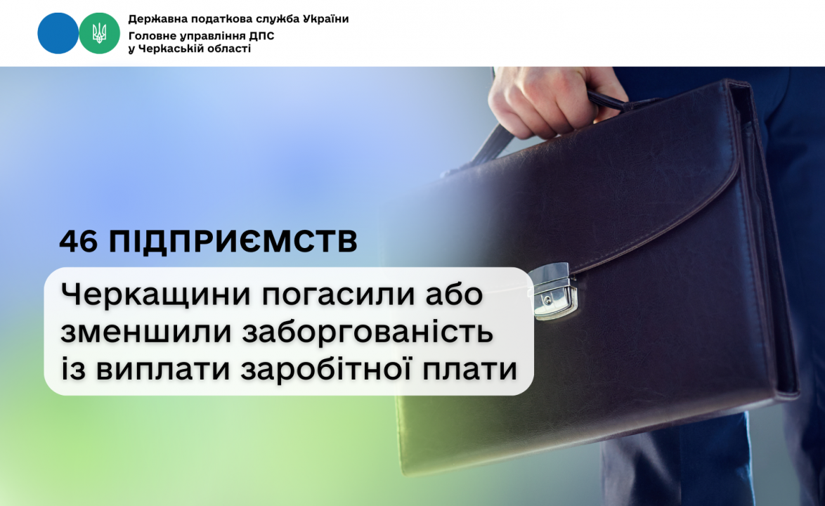 Керівниками структурних підрозділів ГУ ДПС у Черкаській області, територіально розміщених в ДПІ, заслухано керівників 31 підприємства-боржника, як результат проведеної індивідуальної роз’яснювальної роботи – 29 підприємствами погашено або частково зменшено борг із виплати заробітної плати на 14,4 млн грн, надійшло податку на доходи фізичних осіб 4,8 млн грн та 13,0 млн грн єдиного внеску
