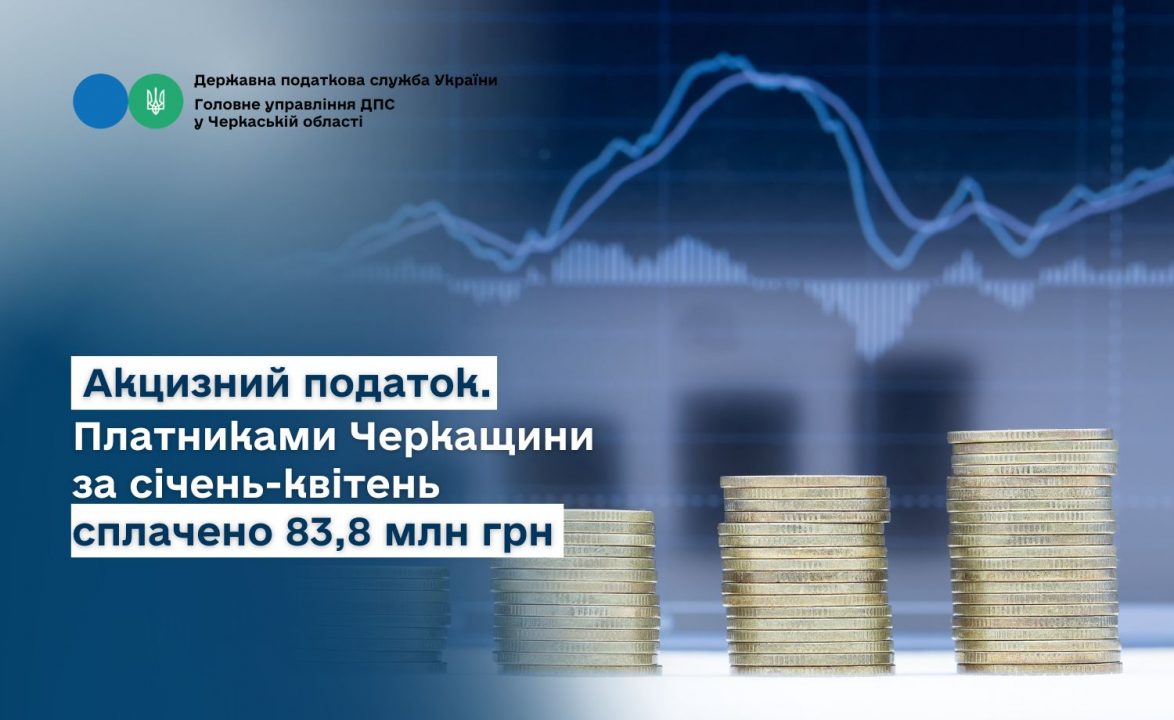 За повідомленням в.о. начальника Головного управління ДПС у Черкаській області Тетяни Харьковської, за січень-квітень 2025 року платники Черкаської області до загального фонду державного бюджету сплатили 8 781,8 тис. грн акцизного податку з вироблених та ввезених в Україну підакцизних товарів. Додатково до державного бюджету надійшло 1 190,1 тис. грн, що становить 115,7% від доведених показників доходів Державної податкової служби України.