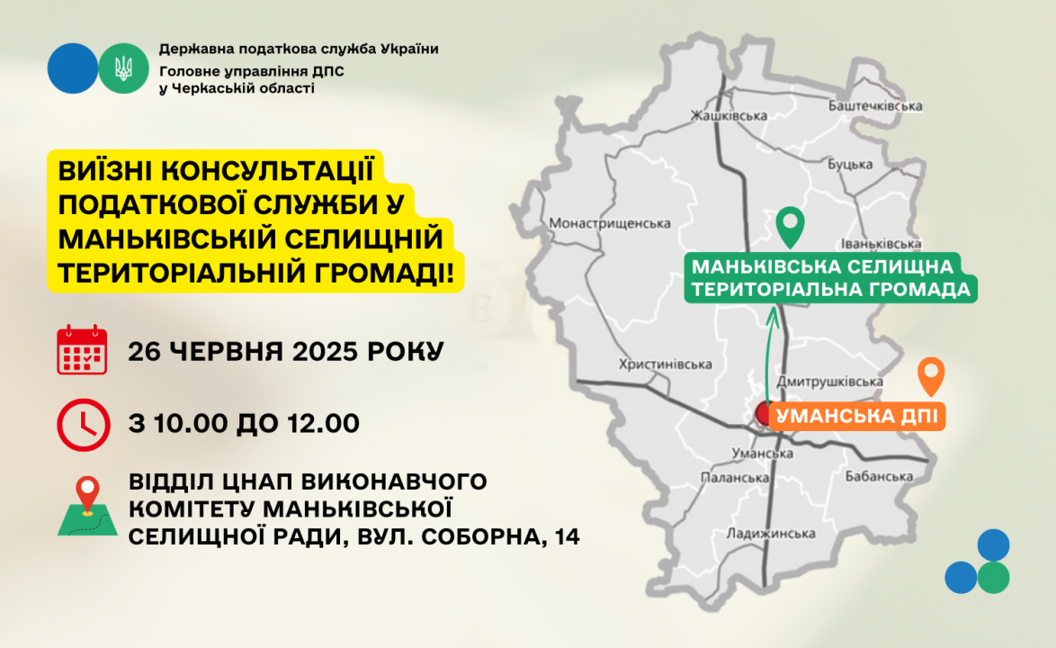 У межах цієї ініціативи, 26 червня 2025 року, працівники Уманської державної податкової інспекції завітають до Маньківської селищної територіальної громади.
