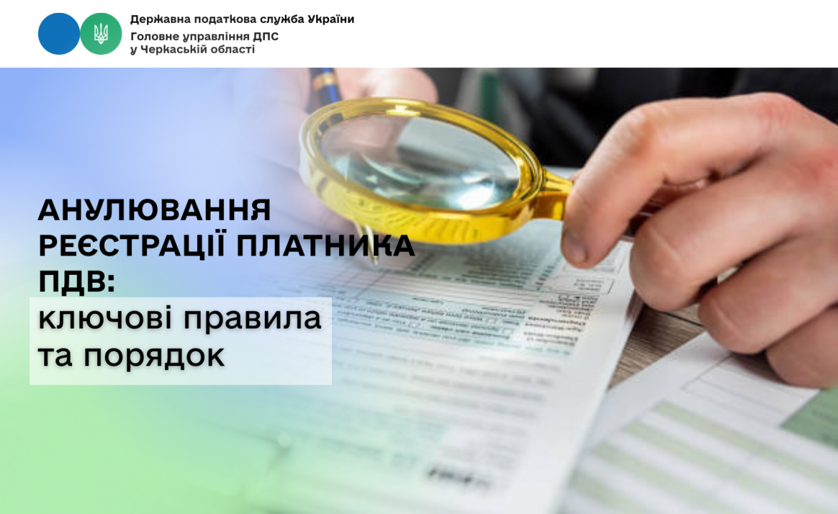 Анулювання реєстрації платника ПДВ відбувається у випадках, коли підприємство або ФОП більше не відповідають вимогам для перебування в реєстрі платників ПДВ, припиняють діяльність або переходять на спрощену систему  оподаткування. Про це розповідає очільниця ГУ ДПС у Черкаській області – Тетяна Харьковська.