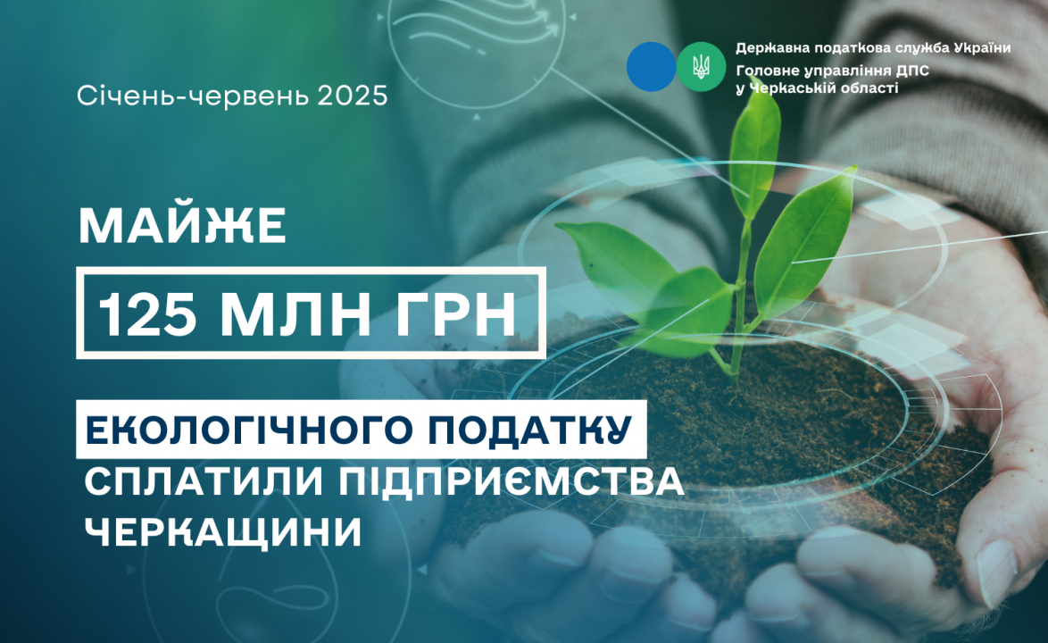 Підприємства Черкаської області, які здійснюють викиди забруднюючих речовин в атмосферне повітря, скиди у водні об’єкти та розміщують відходи, перерахували до Зведеного бюджету України упродовж І півріччя 2025 року 124,8 млн грн екологічного податку.