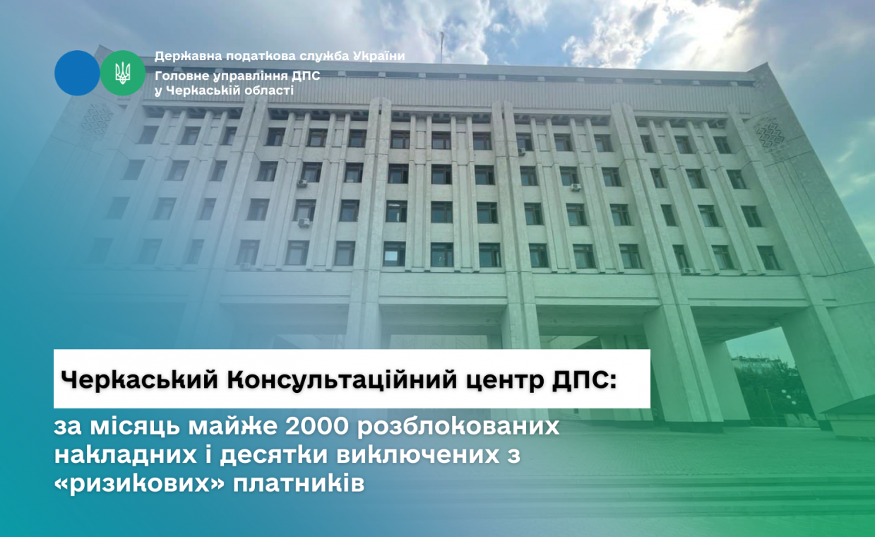 Консультаційний центр з питань розблокування податкових накладних та виключення з переліку «ризикових» платників податків, що діє при Головному управлінні ДПС у Черкаській області, демонструє позитивні результати роботи. З моменту створення Центру на початку лютого 2025 року, за дорученням Голови ДПС України Руслана Кравченка, майже 2000 податкових накладних було розблоковано, а близько півсотні суб’єктів господарювання – виключено з переліку «ризикових».