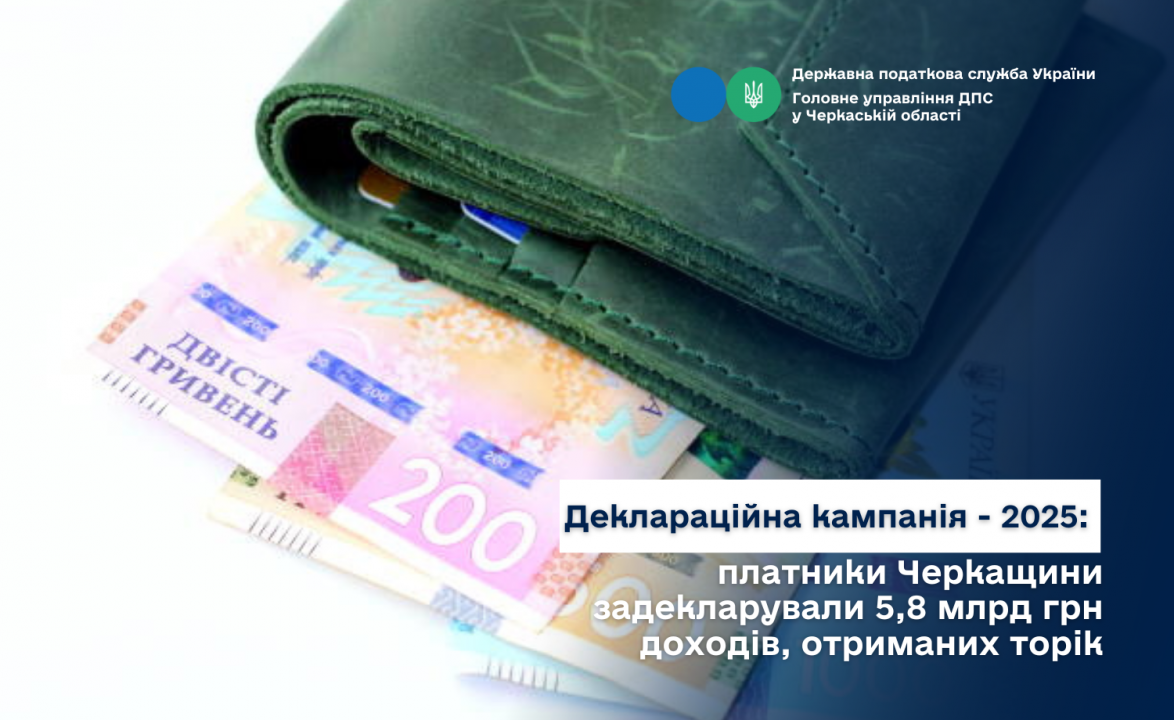 Сума задекларованого громадянами Черкащини доходу становить близько 5,8 млрд грн. Станом на 1 червня 2025 року до ГУ ДПС у Черкаській області подано понад 8,2 тисяч декларацій про майновий стан і доходи за 2024 рік.
