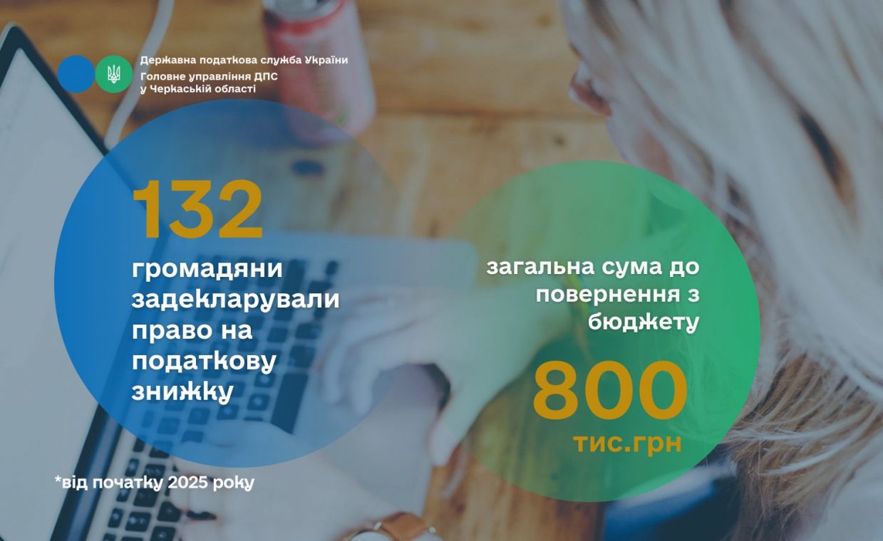 Від початку нинішнього року 132 жителі Черкаської області задекларували право на податкову знижку – на загальну суму до повернення з бюджету 0,8 млн грн