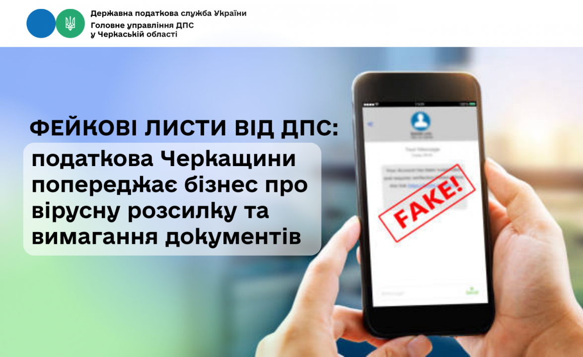 Наголошуємо: Головне управління ДПС у Черкаській області не направляє листи подібного змісту платникам!