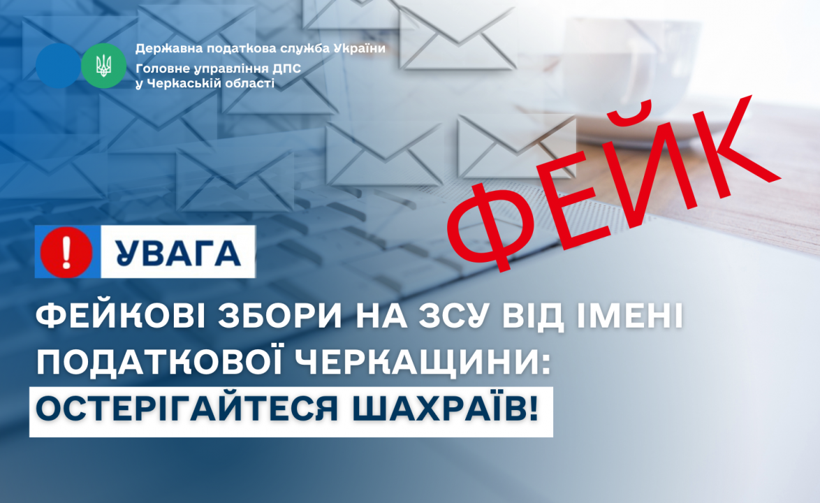 На електронні адреси платників та у месенджери надходять фейкові листи нібито від імені керівництва Головного управління ДПС у Черкаській області. У цих листах міститься прохання нібито надати фінансову допомогу на потреби Збройних Сил України.