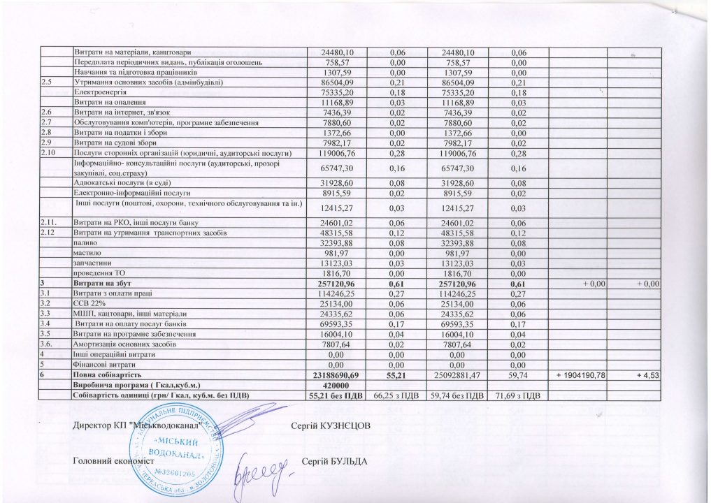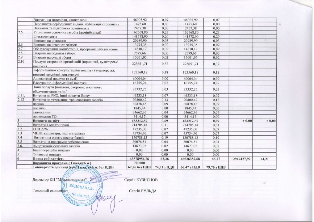 Централізоване водовідведення 74,71 грн. з ПДВ 79,76 грн. з ПДВ зростання +5,05 грн, +6,76%