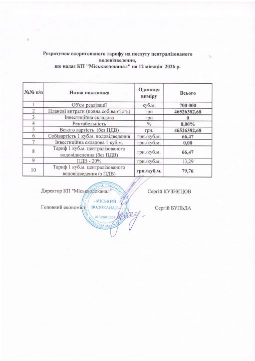 Підприємство пропонує встановити наступні скориговані тарифи (з урахуванням ПДВ):