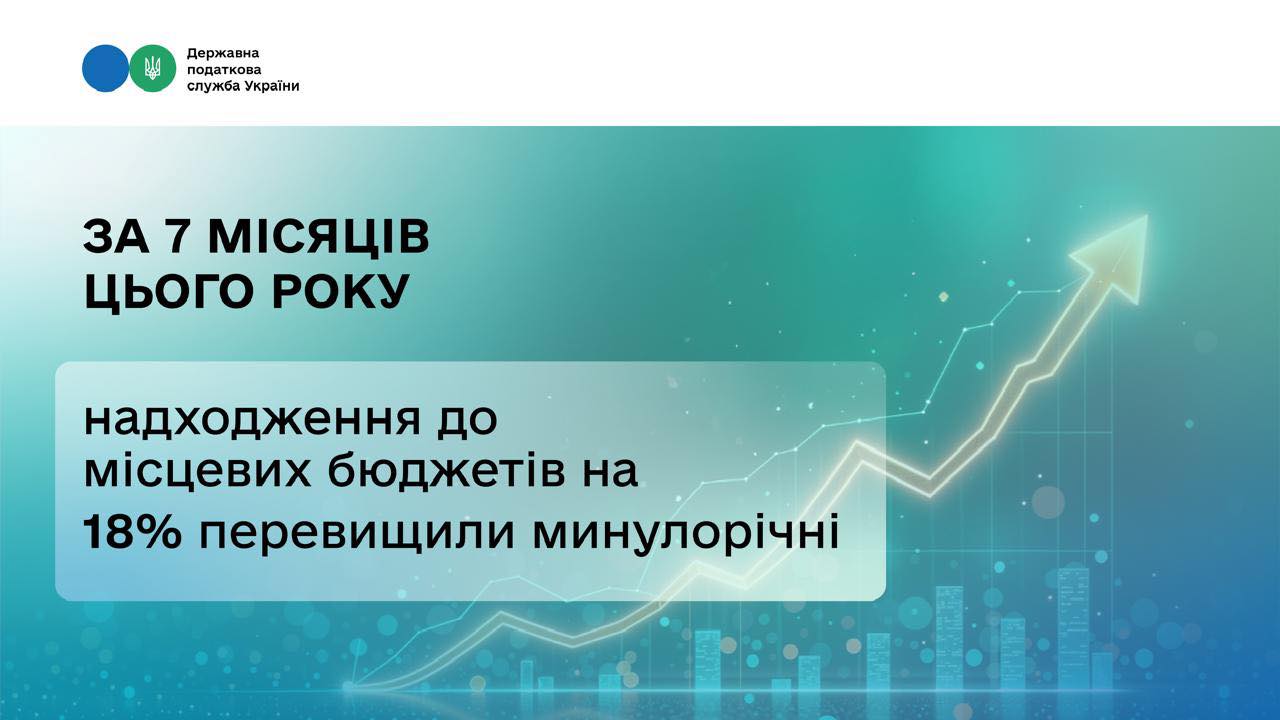 За 7 місяців цього року надходження до місцевих бюджетів склали понад 280 млрд грн. Це на 18 % більше, ніж за аналогічний період 2024 року. Про це на своїй сторінці у Facebook повідомила в. о. Голови Державної податкової служби України Леся Карнаух.