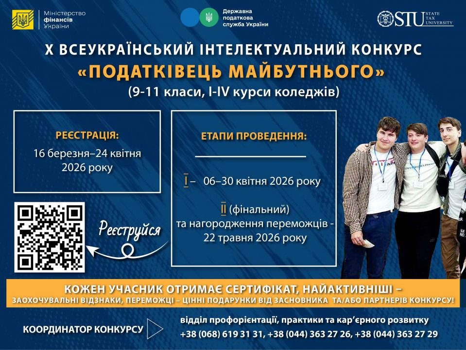 Детальніше про конкурси на сайті Державного податкового університету: https://surl.li/lotkhv