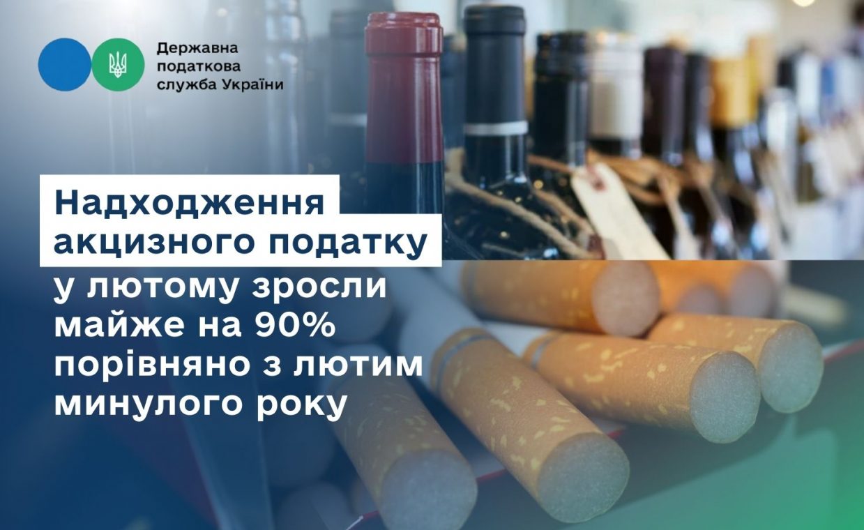 Другий місяць поспіль зберігається тенденція зростання надходжень акцизного податку з вироблених та ввезених підакцизних товарів. У лютому 2025 року до загального фонду державного бюджету надійшло 15,2 млрд грн цього податку. Це на 88,9 % (7,2 млрд грн) більше, ніж у лютому 2024 року.