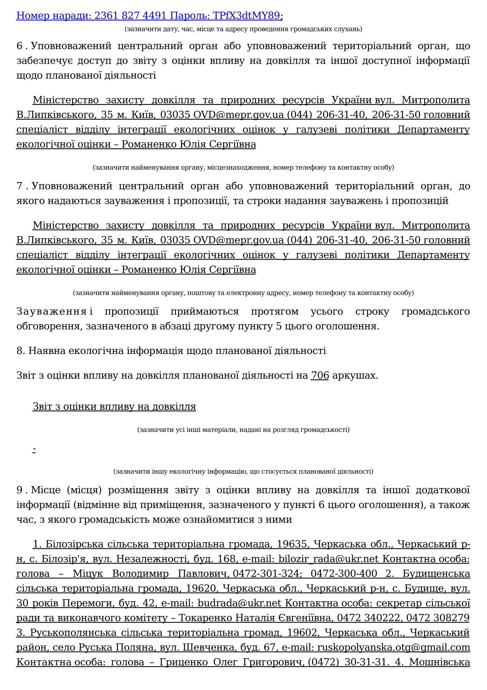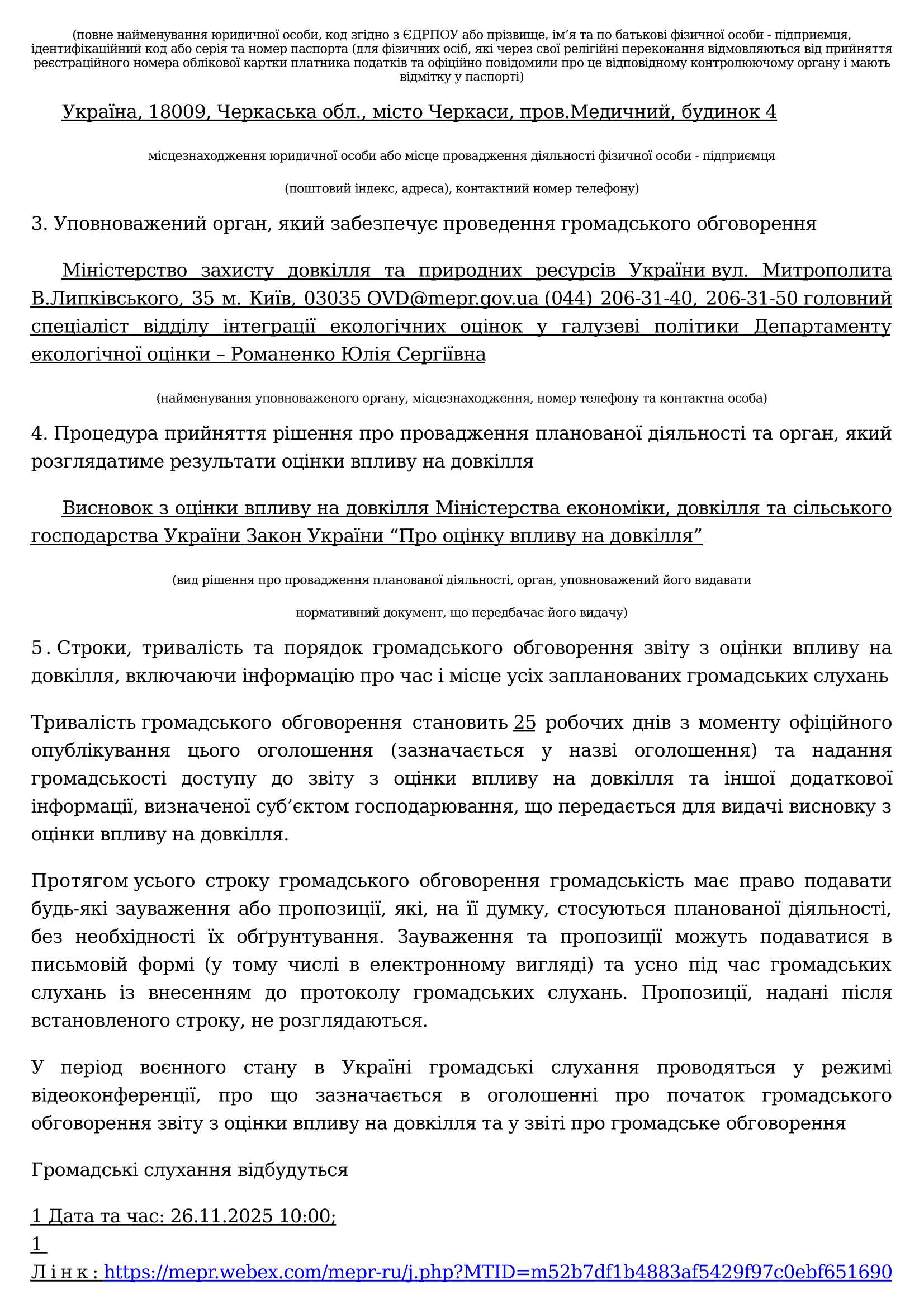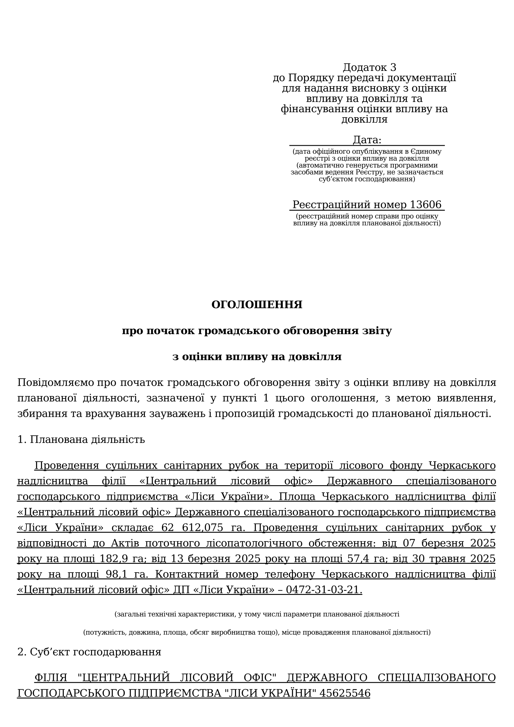 Оголошення про початок громадського обговорення звіту з оцінки впливу на довкілля