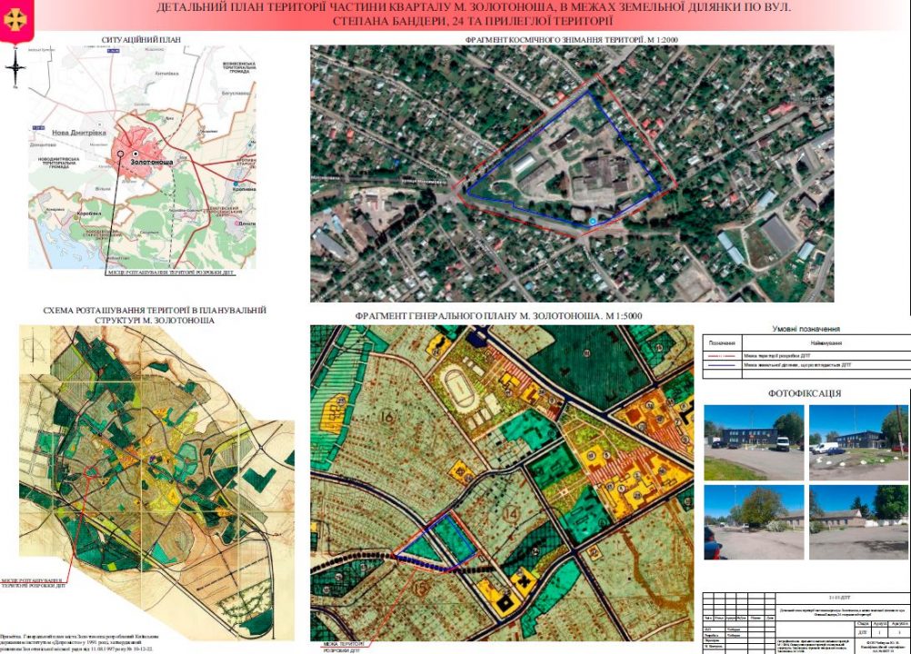 Повідомляємо про початок процедури розгляду та врахування пропозицій громадськості щодо розробленого детального плану території частини кварталу м. Золотоноша, в межах земельної ділянки по вул. Степана Бандери, 24 та прилеглої території.