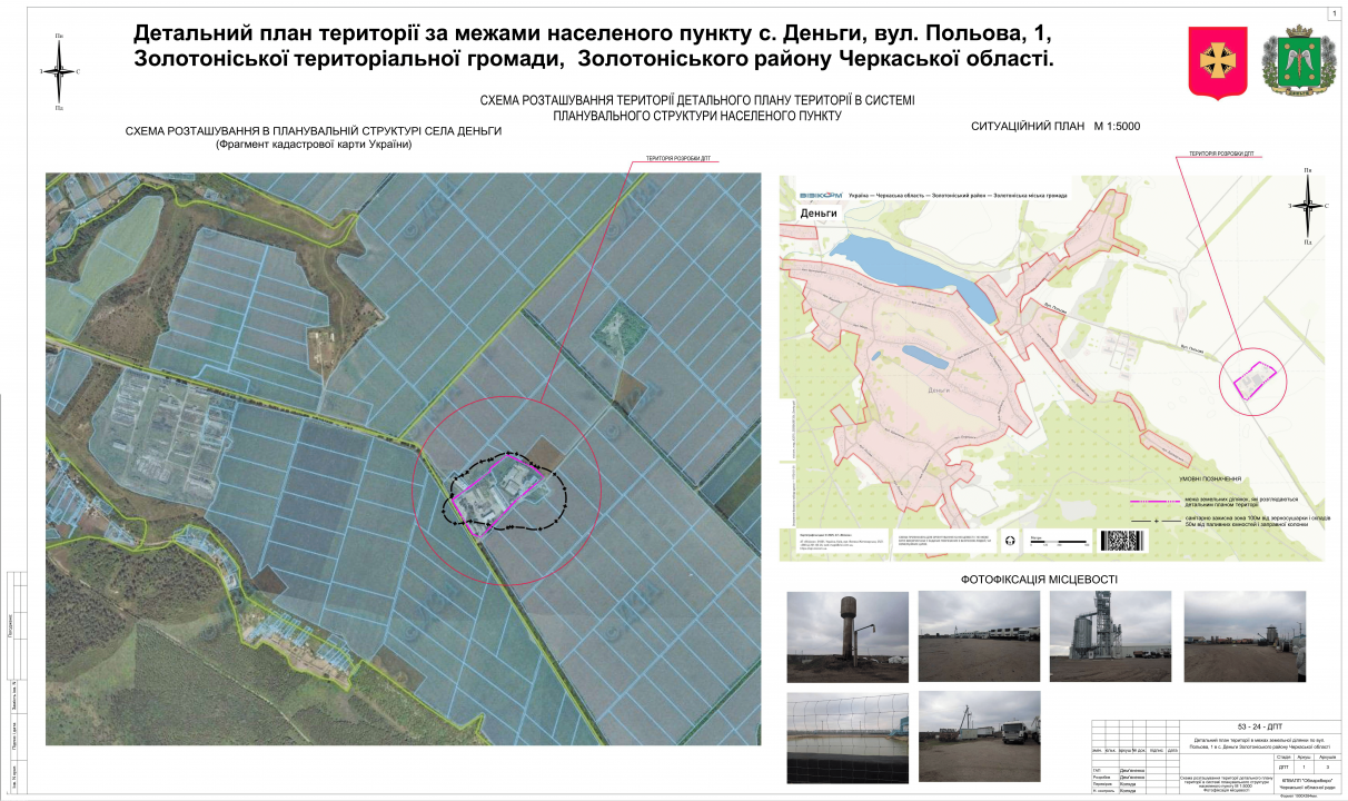 Повідомляємо про початок процедури розгляду та врахування пропозицій громадськості щодо розробленого детального плану території за межами населеного пункту с. Деньги, вул. Польова, 1, Золотоніського теторіальної громади, Золотоніського району Черкаської області.