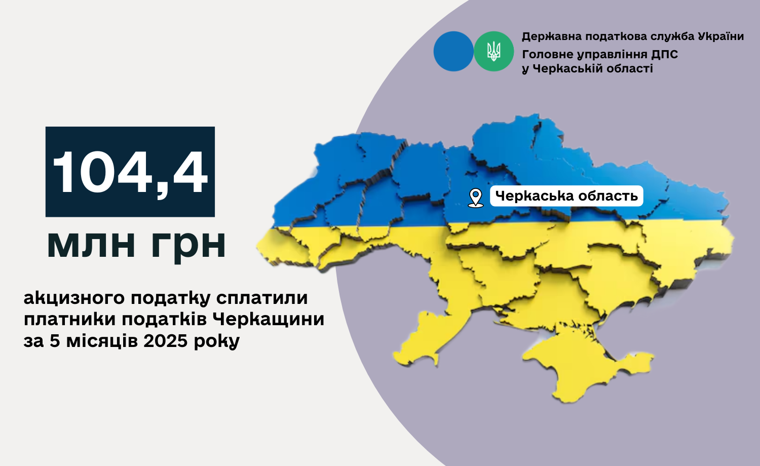 За повідомленням начальника Головного управління ДПС у Черкаській області Тетяни Харьковської, за січень-травень 2025 року платники Черкаської області до загального фонду державного бюджету сплатили 11,7 млн грн акцизного податку з вироблених та ввезених в Україну підакцизних товарів.