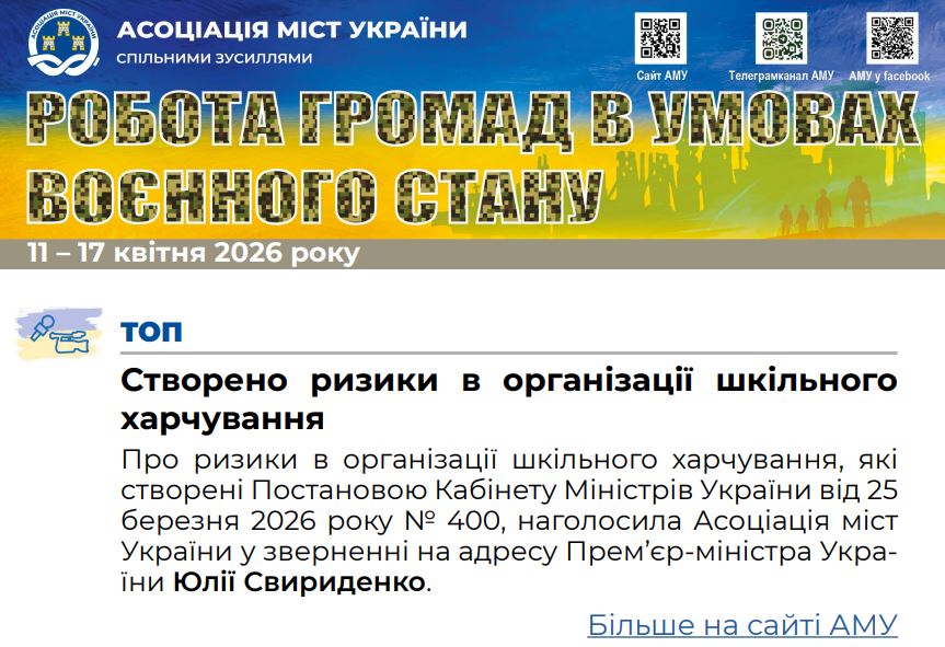 Щотижневий дайджест Асоціації міст України, випуск за 11-17 квітня 2026 року.