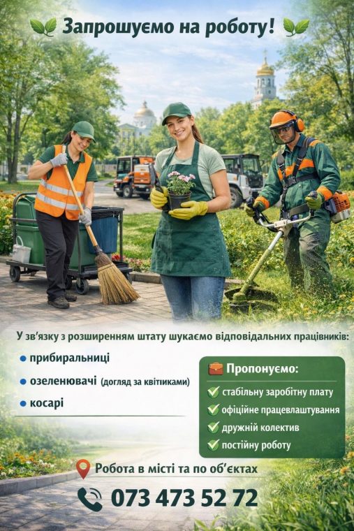 У зв’язку із розширенням штату підприємство зі сфери благоустрою шукає на постійну роботу відповідальних  працівників!