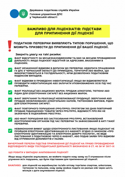 Важливо для ліцензіатів: підстави для припинення дії ліцензії