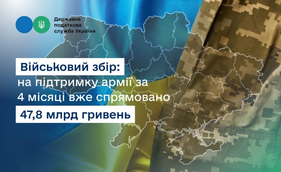 Протягом січня – квітня 2025 року платники податків сплатили до бюджету 47,8 млрд грн військового збору. Це втричі або на 35 млрд грн більше за показник відповідного періоду минулого року.