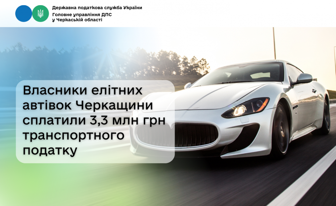 Із початку 2025 року власники елітних автівок сплатили до місцевих бюджетів Черкащини 3,3 млн грн транспортного податку.