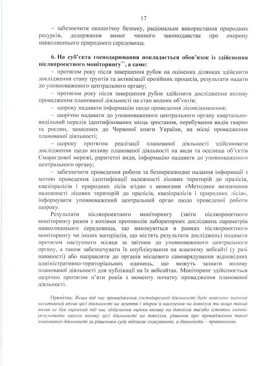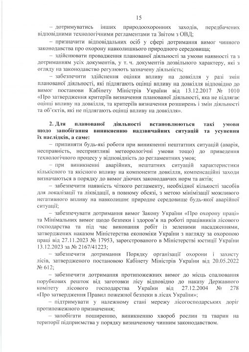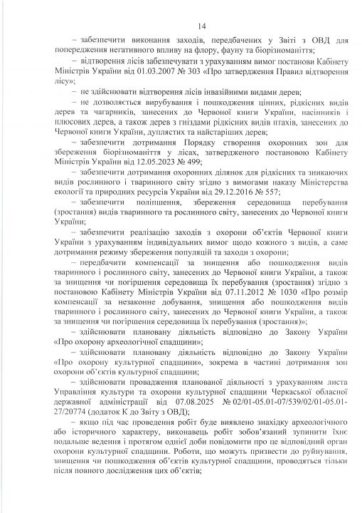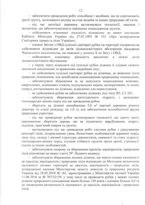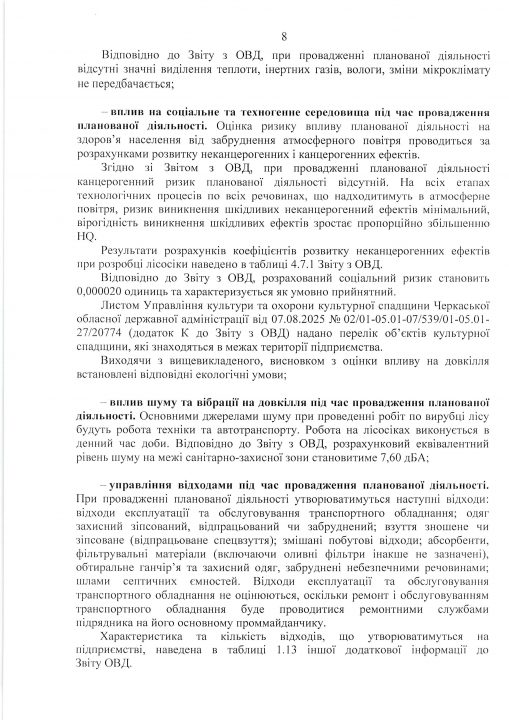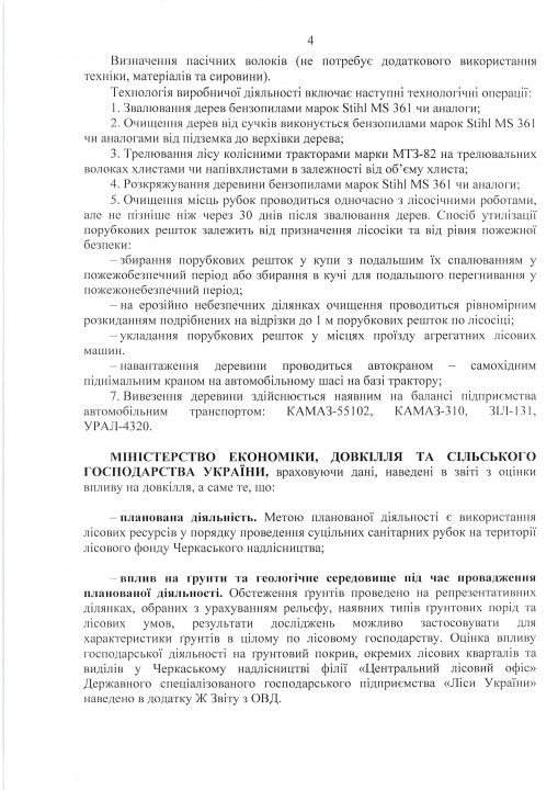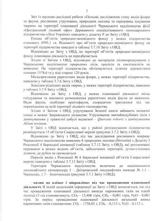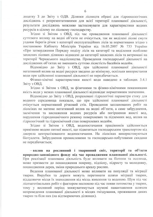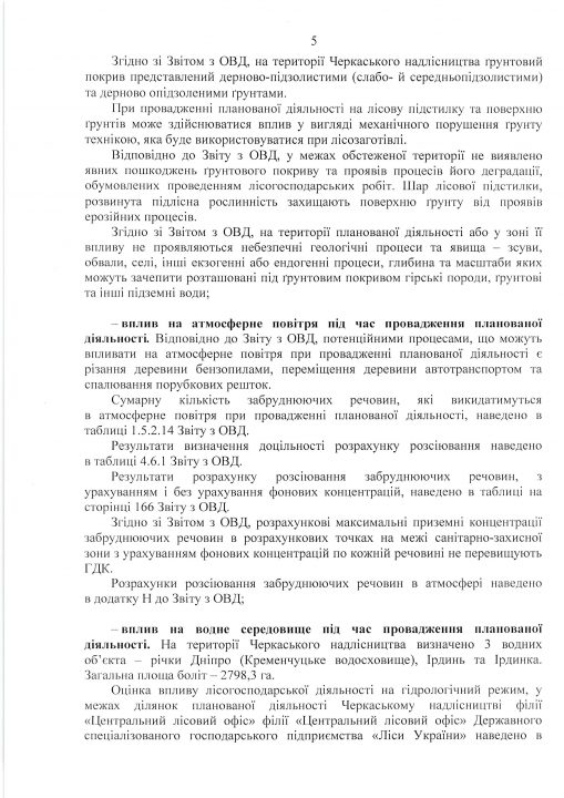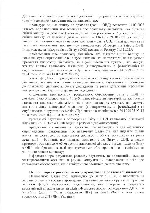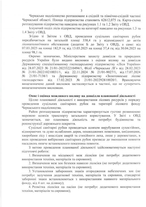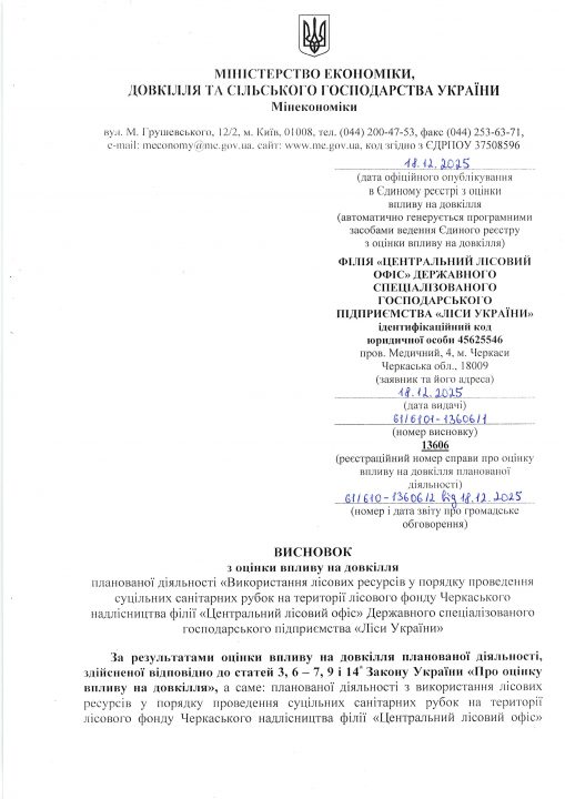 Висновок з оцінки впливу на довкілля планованої діяльності «Використання лісових ресурсів у порядку проведення суцільних санітарних рубок на території лісового фонду Черкаського надлісництва філії «Центральний лісовий офіс» Державного спеціалізованого господарського підприємства «Ліси України»