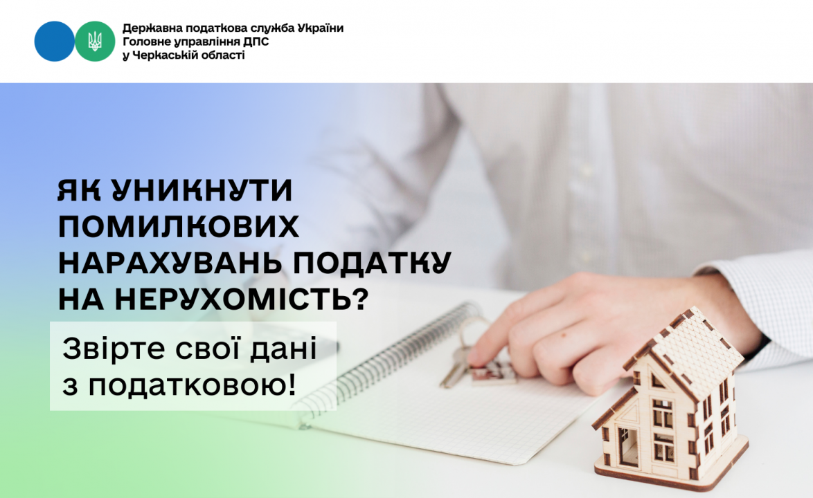 Очільниця Головного управління ДПС у Черкаській області Тетяна Харьковська нагадує, що платники податку на нерухоме майно, відмінне від земельної ділянки, мають право звернутися з письмовою заявою до контролюючого органу для проведення звірки даних (п.п. 266.7.3 ПКУ).