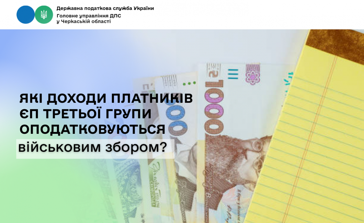 Згідно з Податковим кодексом України платники єдиного податку третьої групи є платниками військового збору. Про це розповідає очільниця Головного управління ДПС у Черкаській області – Тетяна Харьковська.