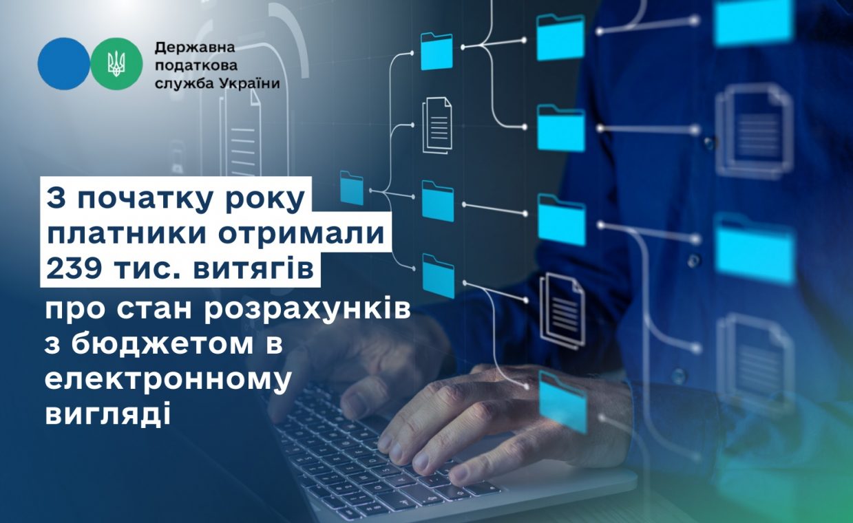 У 2025 році ДПС сформовано 239 тис. витягів про стан розрахунків з бюджетом в електронному вигляді за запитами платників.