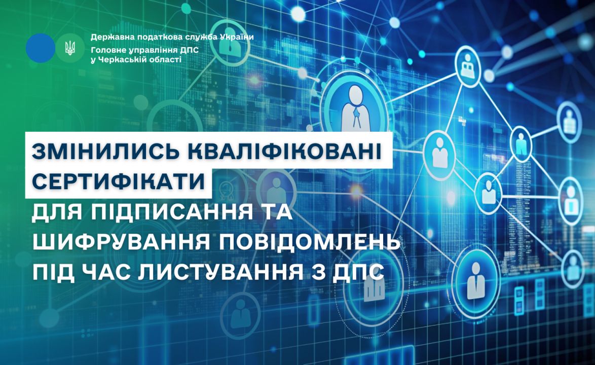 Нагадуємо, що з 06 серпня 2025 року змінились кваліфіковані сертифікати, які використовуються платниками для підписання та шифрування повідомлень на ДПС (звітність тощо) з використанням Єдиного вікна подання електронної звітності та Електронного кабінету, а також для підписання повідомлень ДПС (квитанцій, інформаційних розсилок тощо).