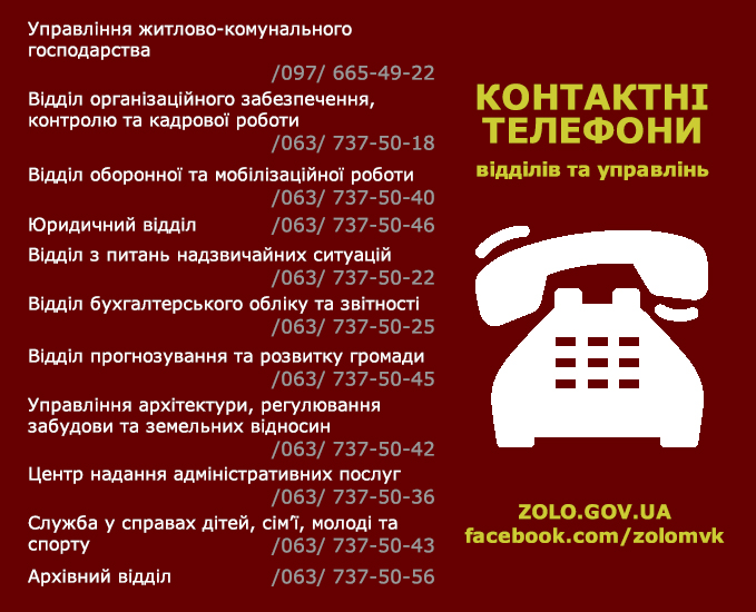 | Відділ оборонної та мобілізаційної роботи | (+38 )063-737-50-40 |