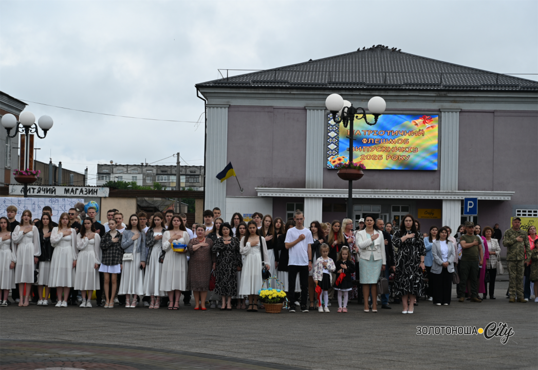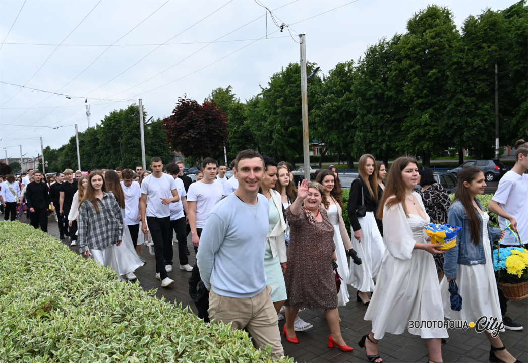 Розпочавши підготовку, організатори дійшли спільної думки, що прощання випускників із школою відбудеться у форматі патріотичного флешмобу. На центральній вулиці Шевченка цього дня зібралися 250 одинадцятикласників Золотоніської громади. Юнаки й дівчата в супроводі своїх класних керівників та директорів пройшли центральною Алеєю. Вшанували полеглих Героїв та подарували обереги присутнім захисникам і захисницям. Поклали квіти до усіх пам’ятників і пам’ятних знаків у Меморіальному парку та до підніжжя Тарасу Шевченку.