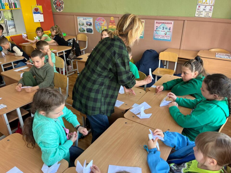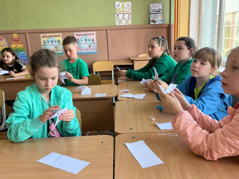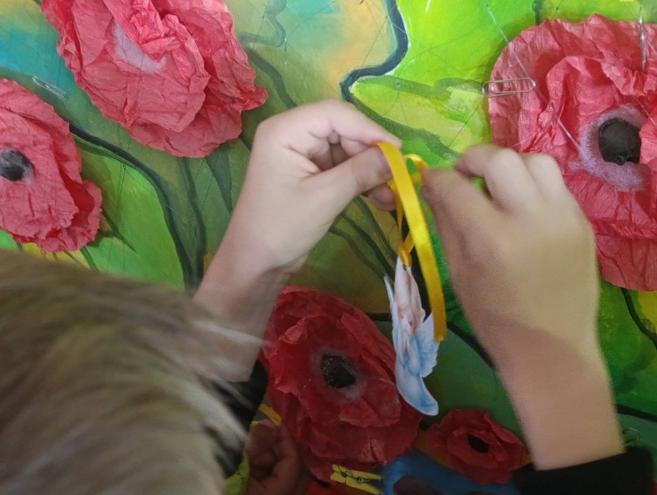 На знак світлої пам’яті про кожну загиблу дитину учні школи виготовили янголят, які стали для них символом надії на мирне майбутнє.