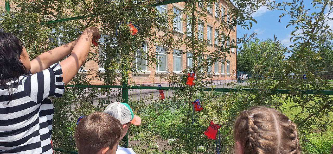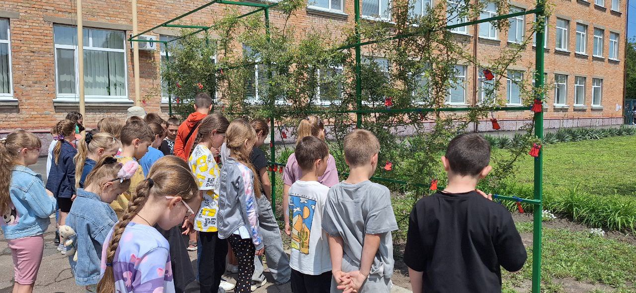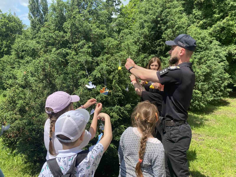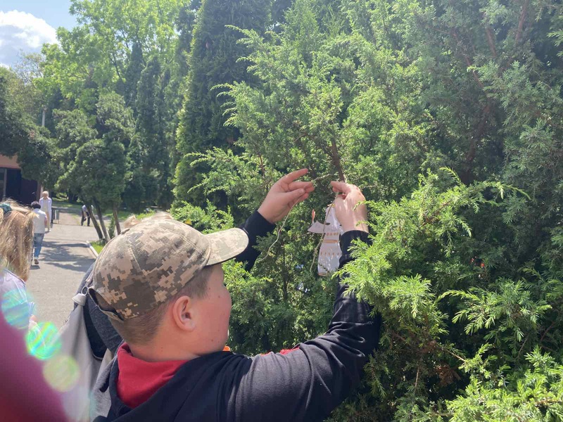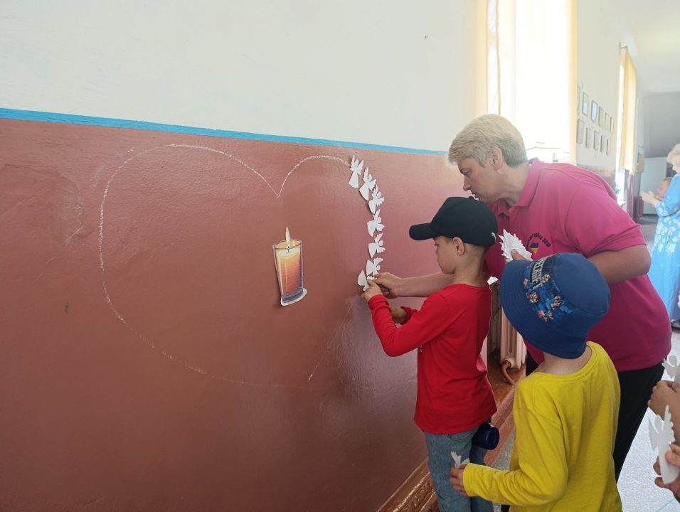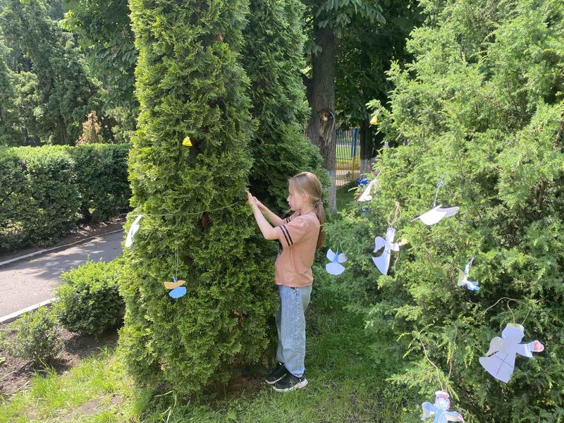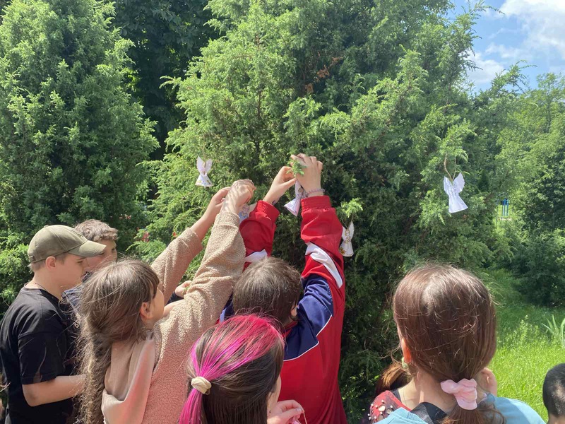 Після хвилини мовчання учні пришкільного табору «Сузір’я» виготовили та розвісили на гілках дерев маленькі дзвоники, янголят і голубів, які символізують душі та голоси, які більше ніколи не звучатимуть.